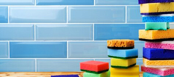 Губки синего цвета - менее жёсткие, чем зелёные. Они тоже отлично отмывают сантехнику, подходят для эмали.