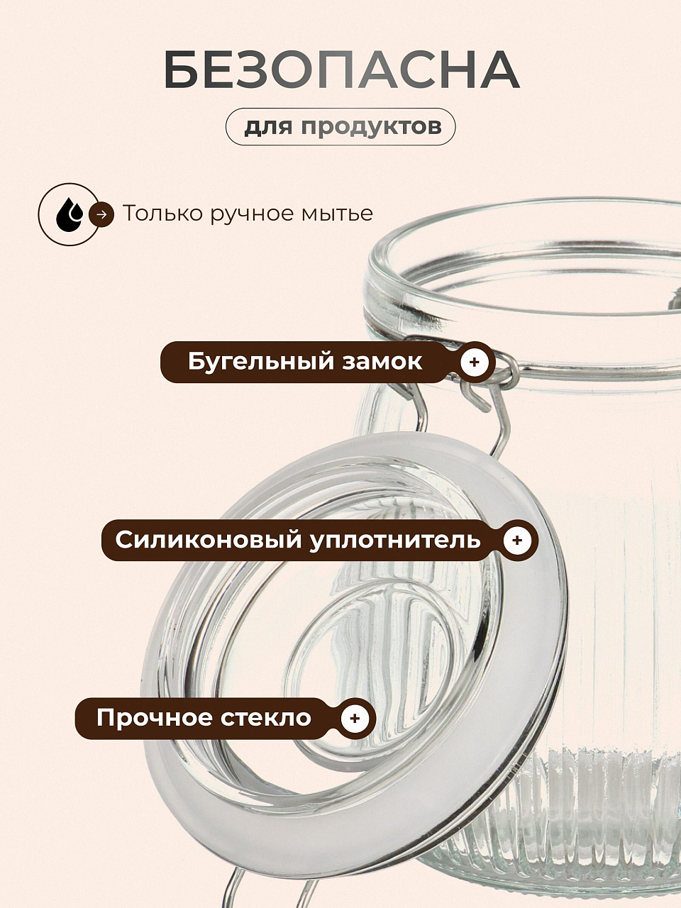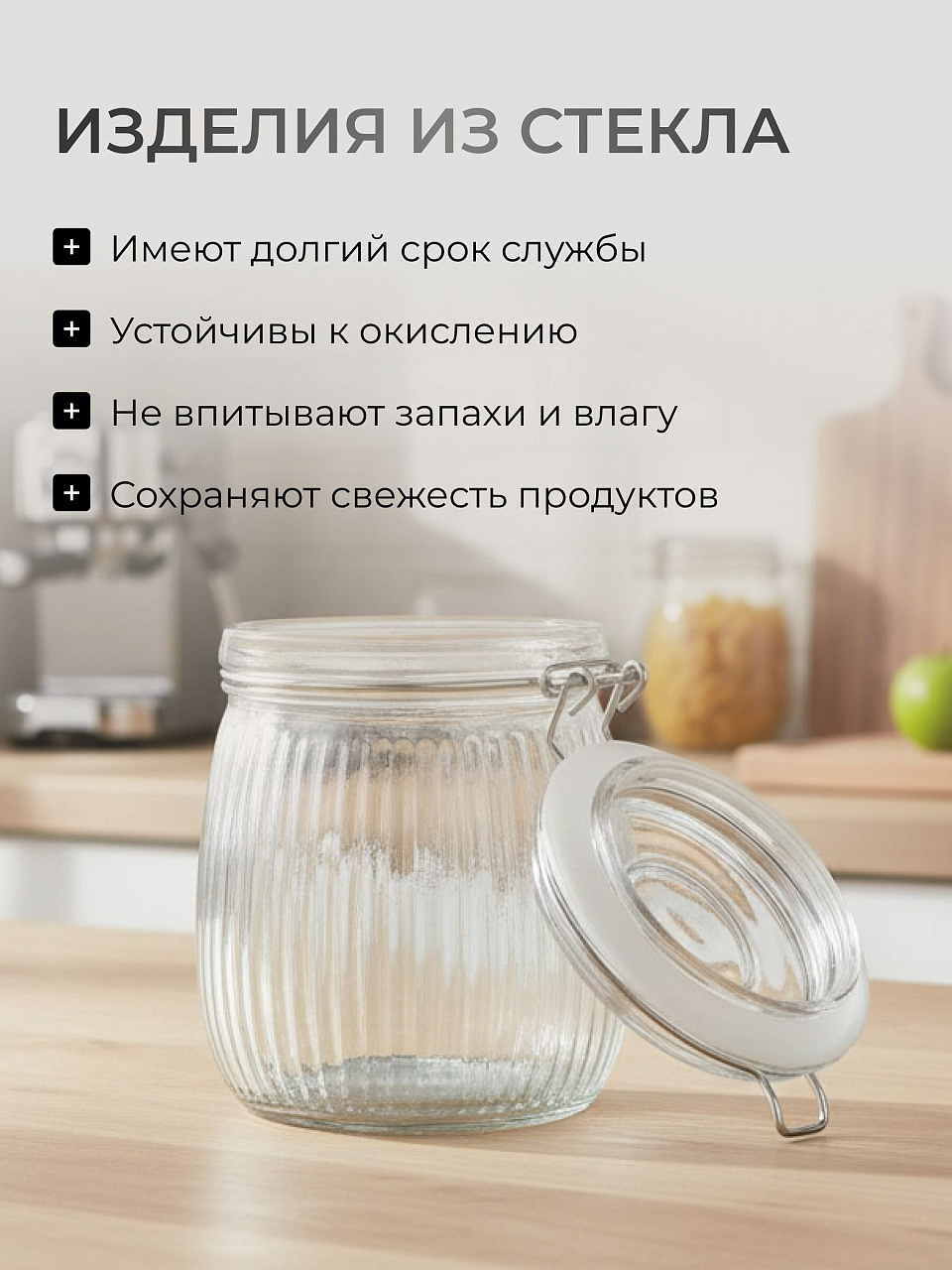 Элегантная банка для сыпучих продуктов из стекла объемом 750 мл станет стильным дополнением любой кухни. Модель "Страйп" с бугельным замком обеспечивает надежное хранение содержимого, сохраняя его свежесть и аромат. Идеально подходит для хранения круп, специй и других сыпучих продуктов.