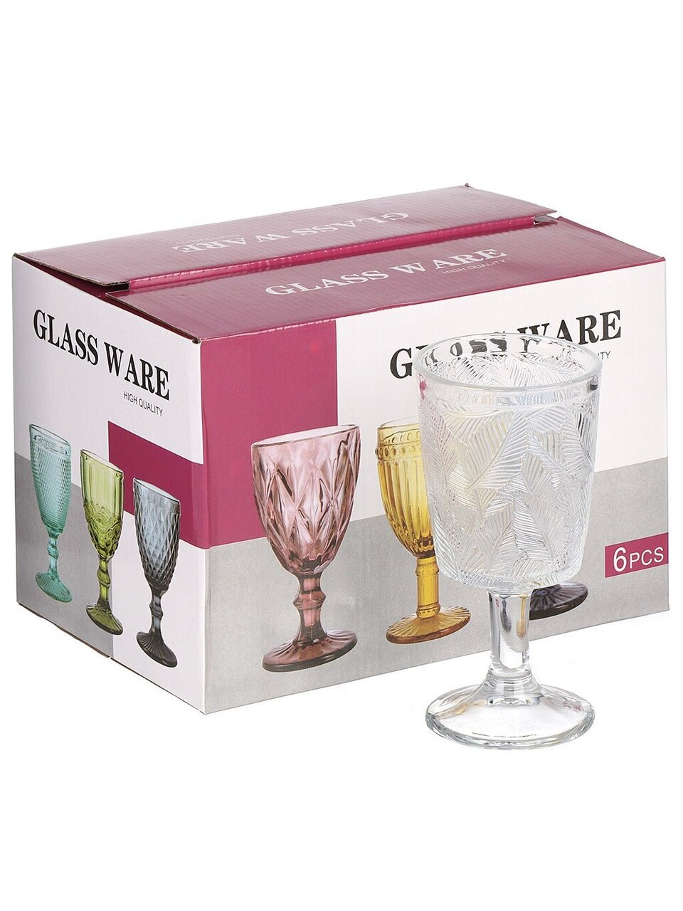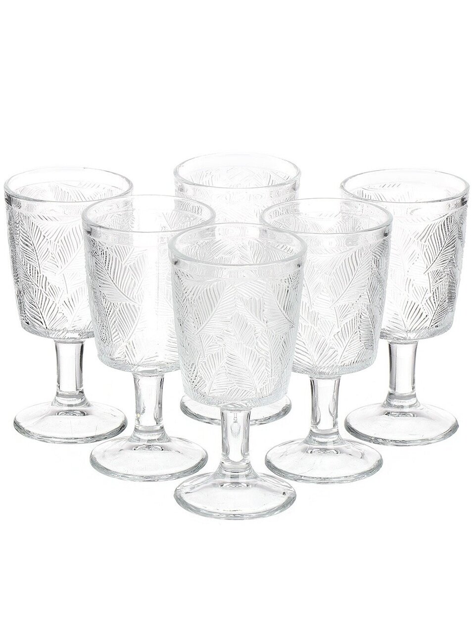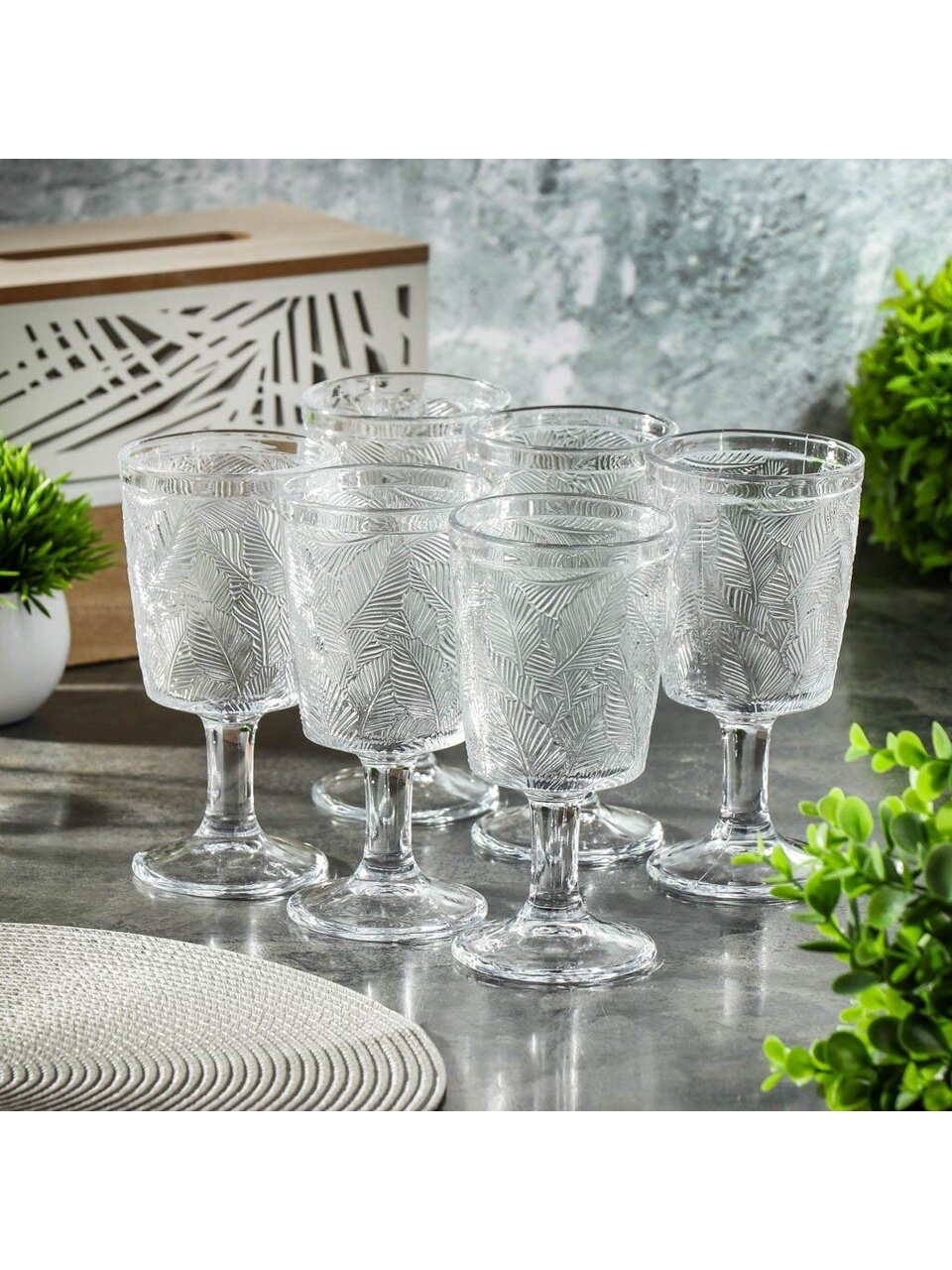 Бокалы для вина 330 мл (6 шт) с рельефным узором «Листья» — эффектная сервировка, универсальный подарок и долговечность по доступной цене.