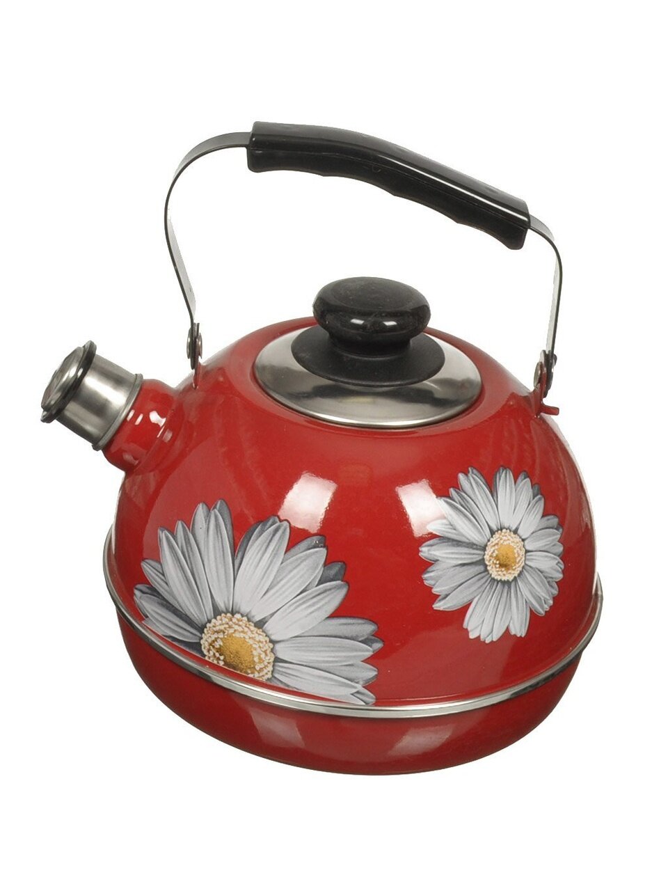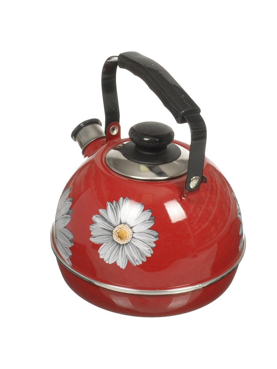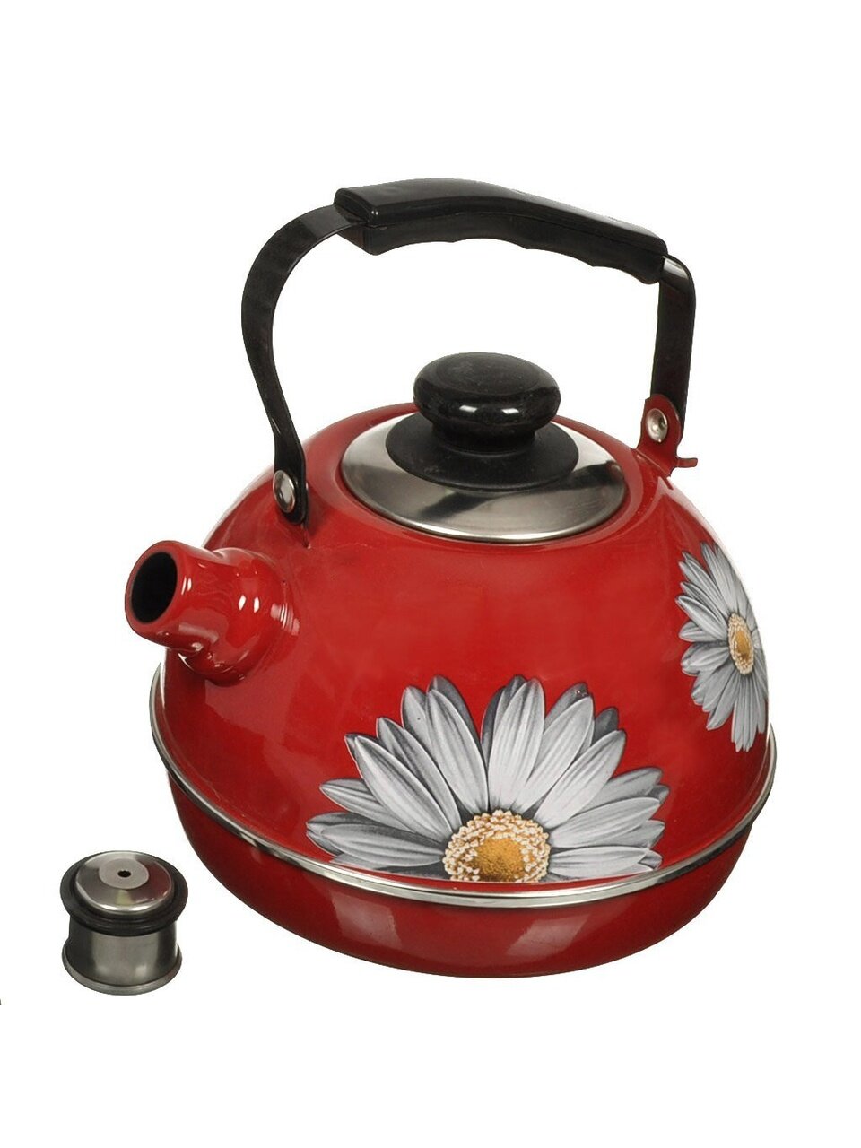 Чайник изготовлен из высококачественного стального проката, что обеспечивает долговечность использования. Внешнее эмалевое покрытие не вступает во взаимодействие с пищевыми продуктами. Такое покрытие защищает сталь от коррозии, придает посуде гладкую стекловидную поверхность и надежно защищает от кислот и щелочей. Чайник оснащен подвижной ручкой и крышкой, которая плотно прилегает к краю. Носик чайника оснащен съемным свистком, звуковой сигнал которого подскажет, когда закипит вода.