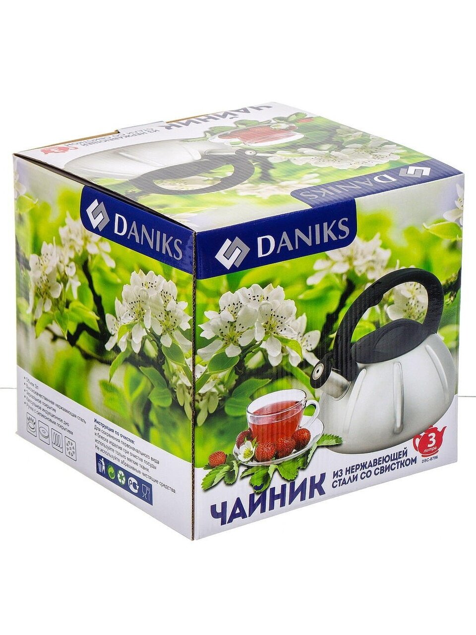 Чайник Daniks 3 л из нержавеющей стали: быстрый нагрев, свисток для контроля, силиконовая ручка — идеальный выбор для дома и дачи