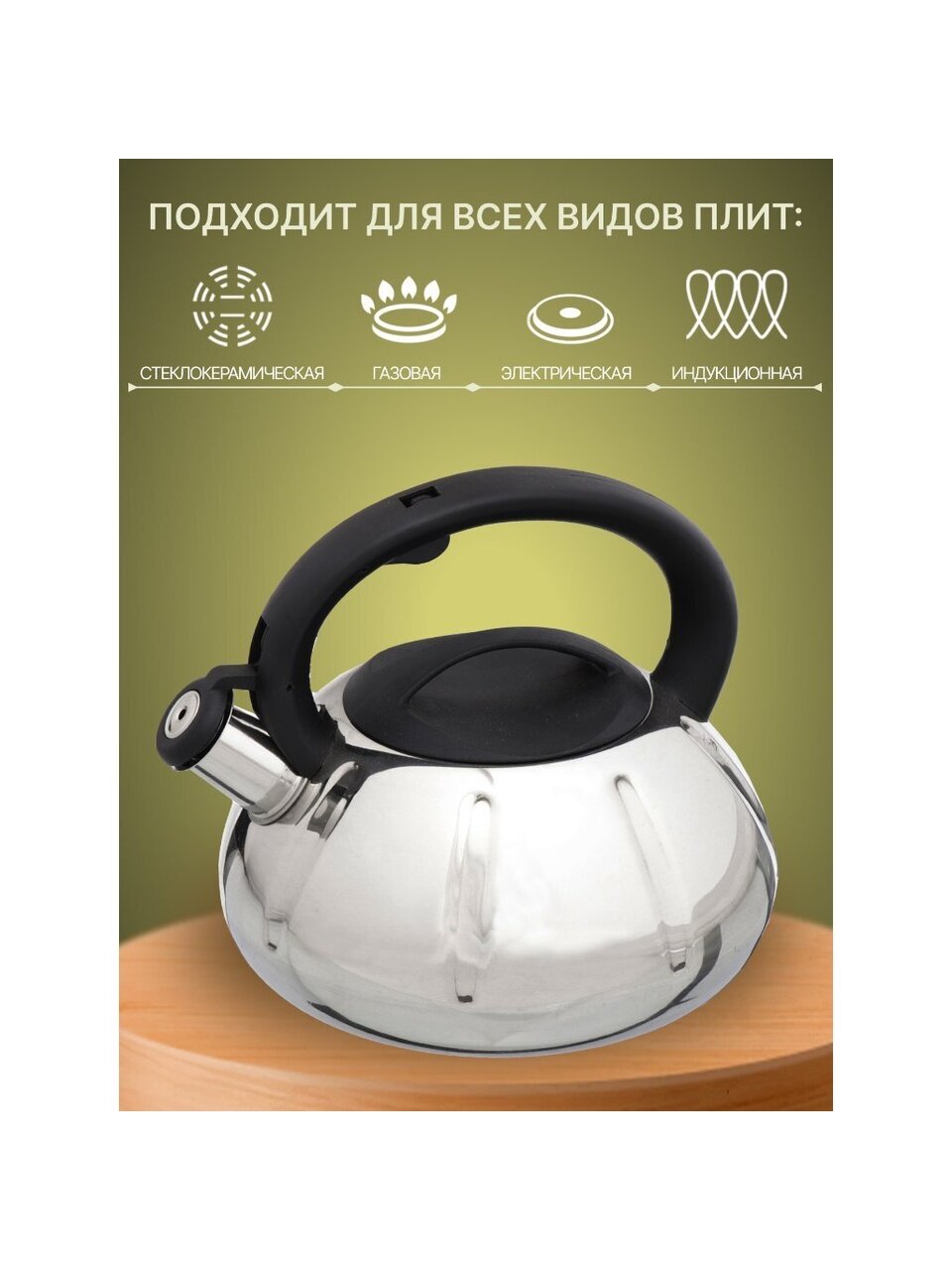 Свисток подает сигнал при закипании, что удобно и безопасно — вы не пропустите момент кипения даже на шумной кухне или в загородном доме.