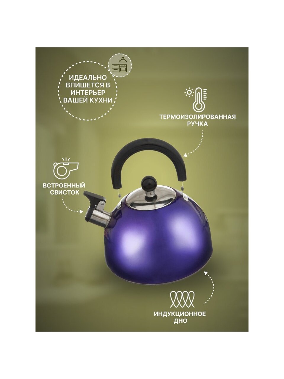 Сравнивая с аналогами, можно отметить: отсутствие фильтра в носике упрощает уход, а капсульное дно обеспечивает равномерный нагрев. Фиолетовый цвет добавляет стильный акцент вашей кухне — такой чайник часто выбирают и на подарок, и для личного пользования.