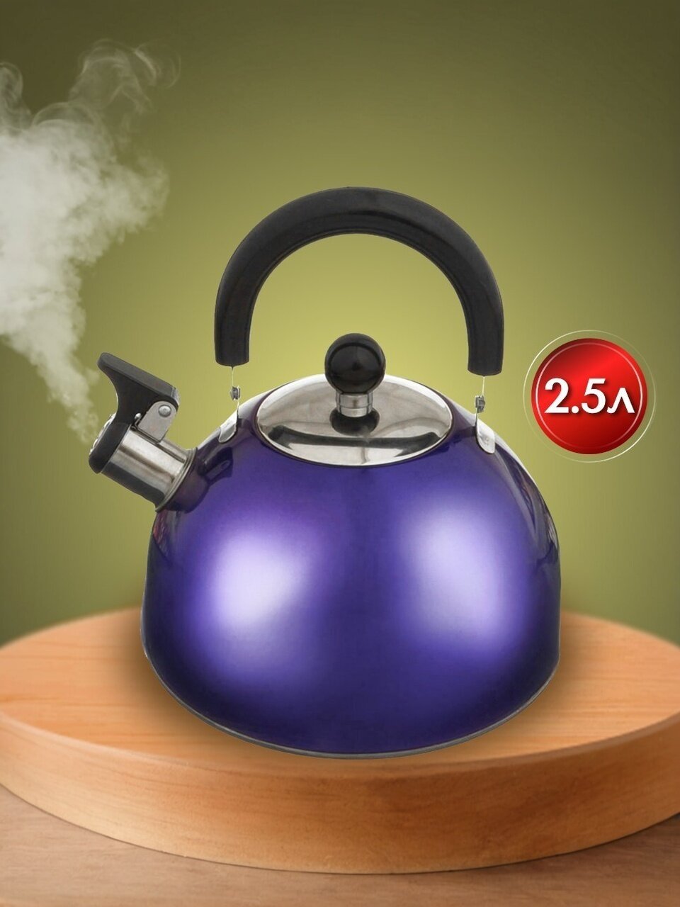 Объем — 2.5 литра, вес — всего 0.65 кг, что делает чайник легким и вместительным для повседневного использования.