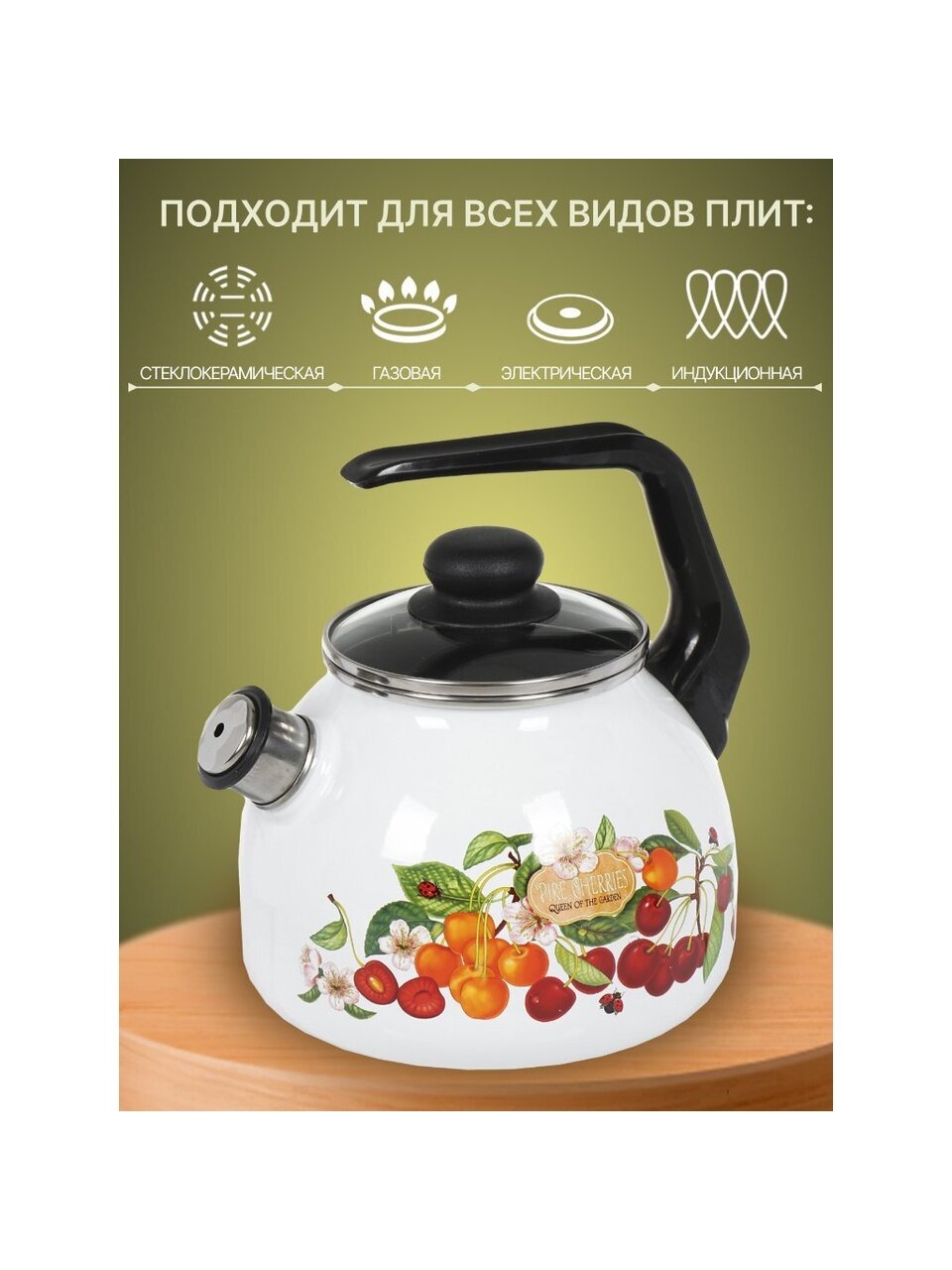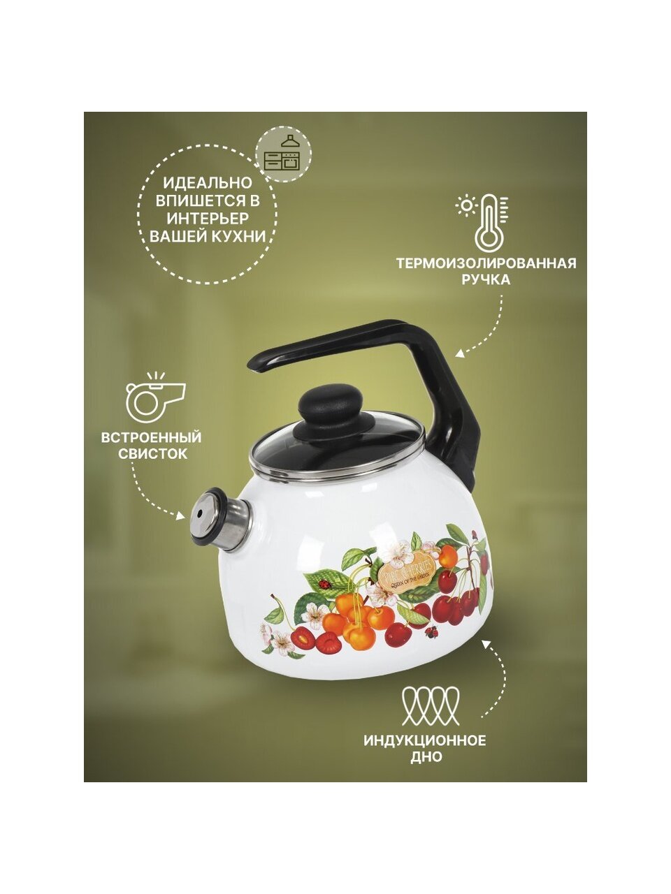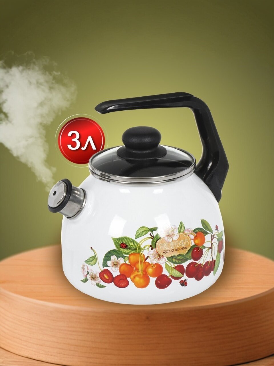 Эмалированный чайник СтальЭмаль "Черешня" 3 л — универсальное решение для индукции, газа и стеклокерамики. Безопасная ручка, яркий декор, выгодная цена.