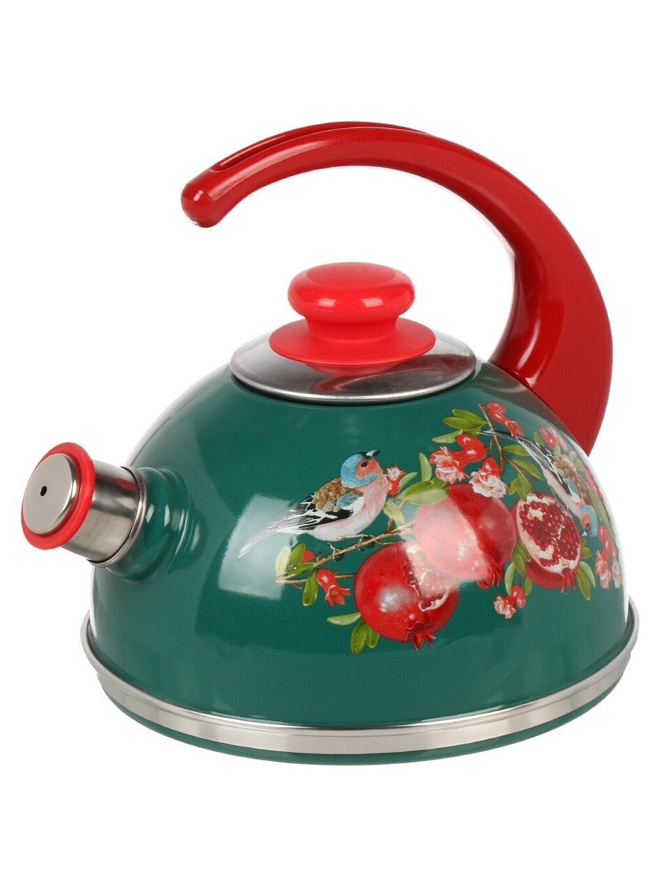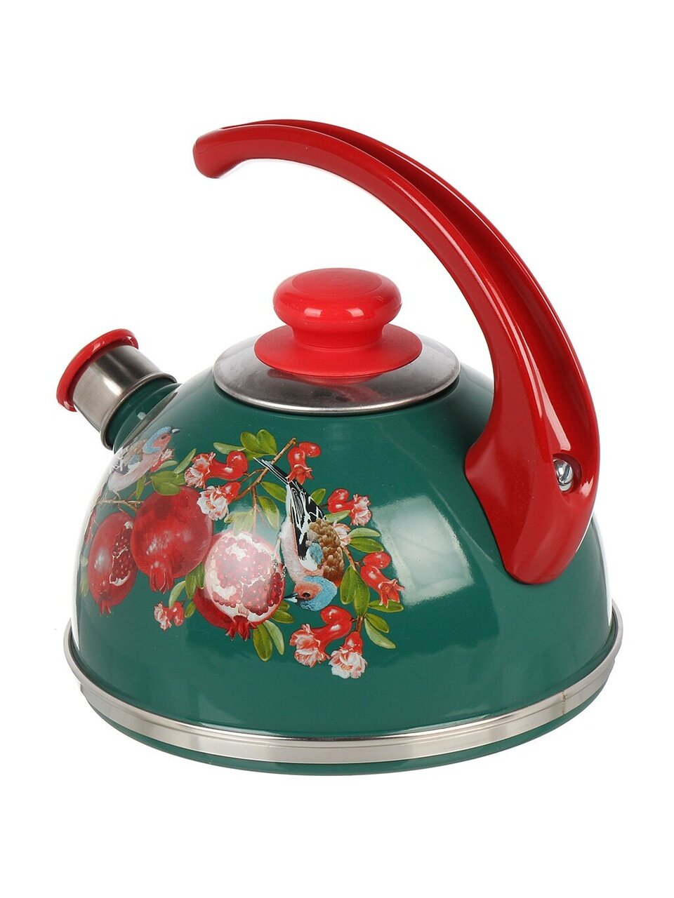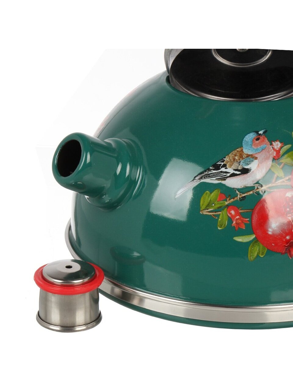 Чайник эмалированный стальной 2,5 л «Цветущий гранат» — удобство кипячения для дома и дачи, стильный бирюзовый дизайн, выгодная цена и долговечность.