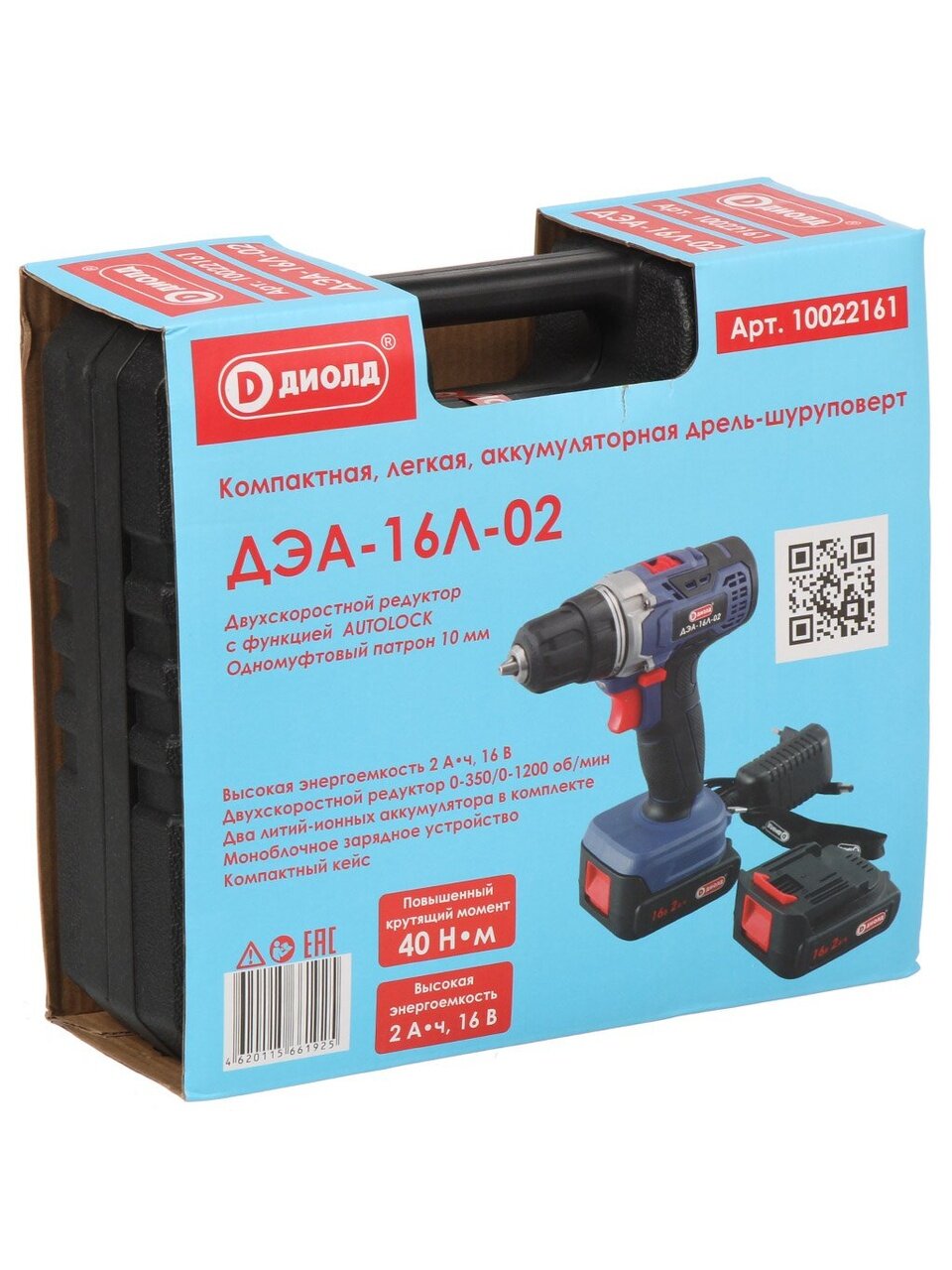 Дрель-шуруповерт Диолд ДЭА-16Л-02: бесщеточный мотор, 2 аккумулятора, кейс — оптимальный выбор для дома и дачи по выгодной цене.