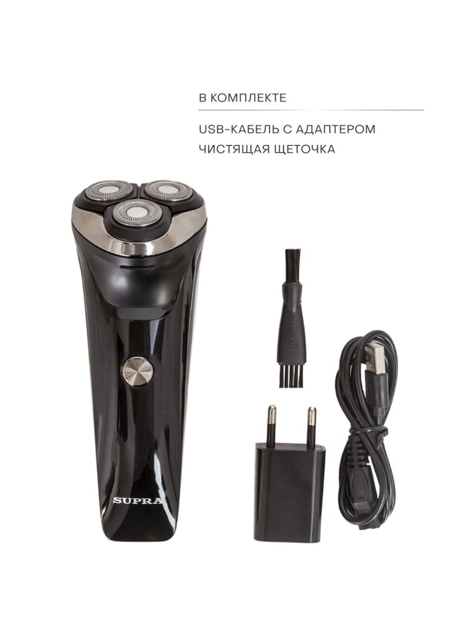 - Комплектация: электробритва, USB кабель, защитная крышка, щеточка для чистки, гарантийный талон, инструкция на русском языке