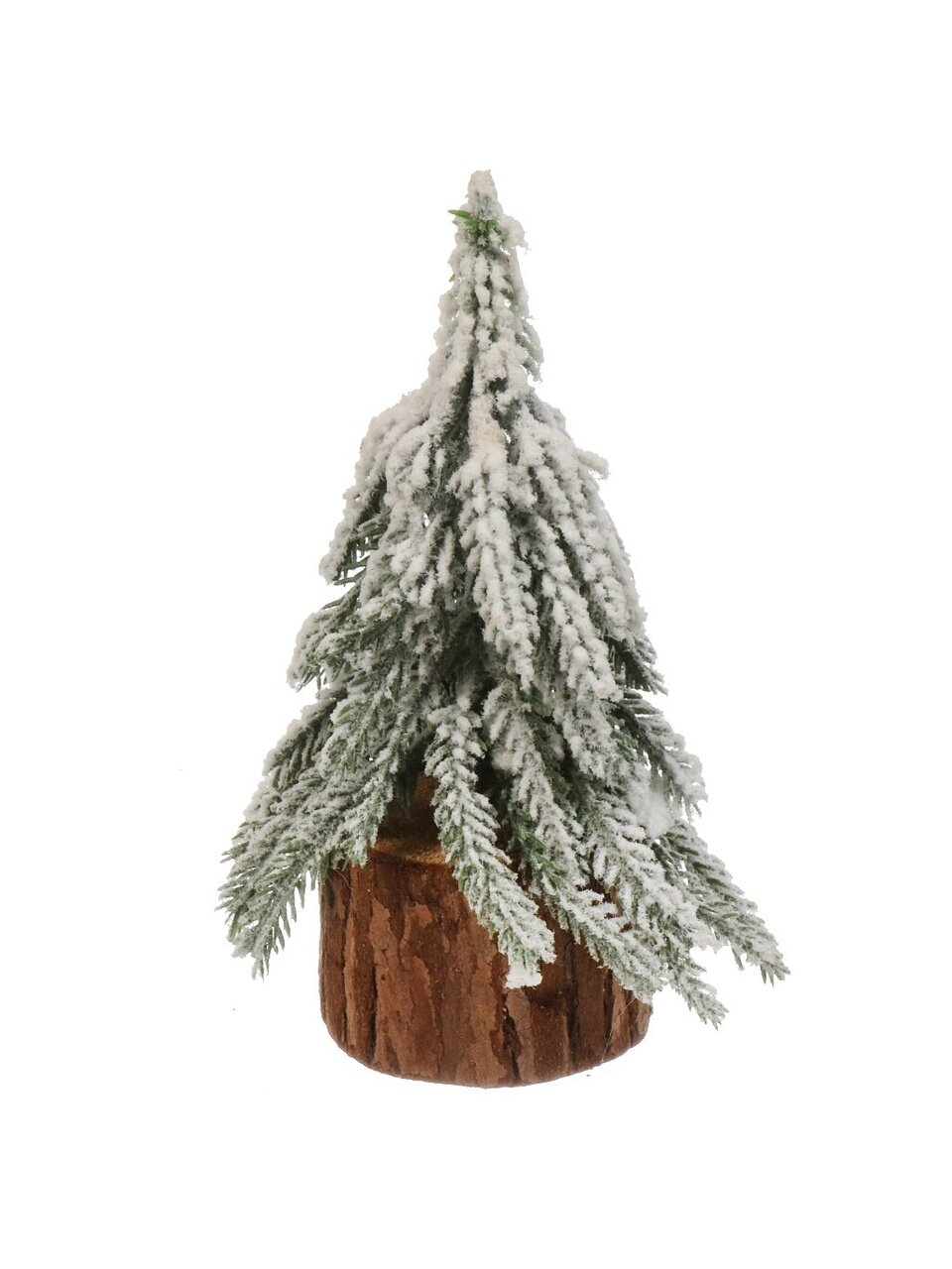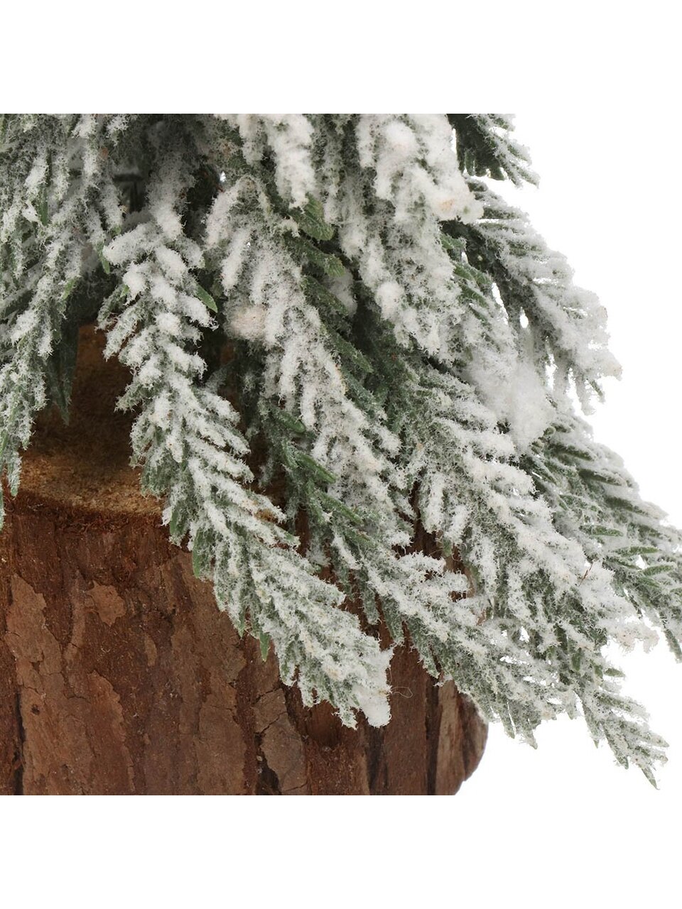 Настольная елка 15 см с литой заснеженной хвоей на деревянном пне: уютный новогодний акцент для дома, офиса или подарка — компактно, стильно, без хлопот по уходу.