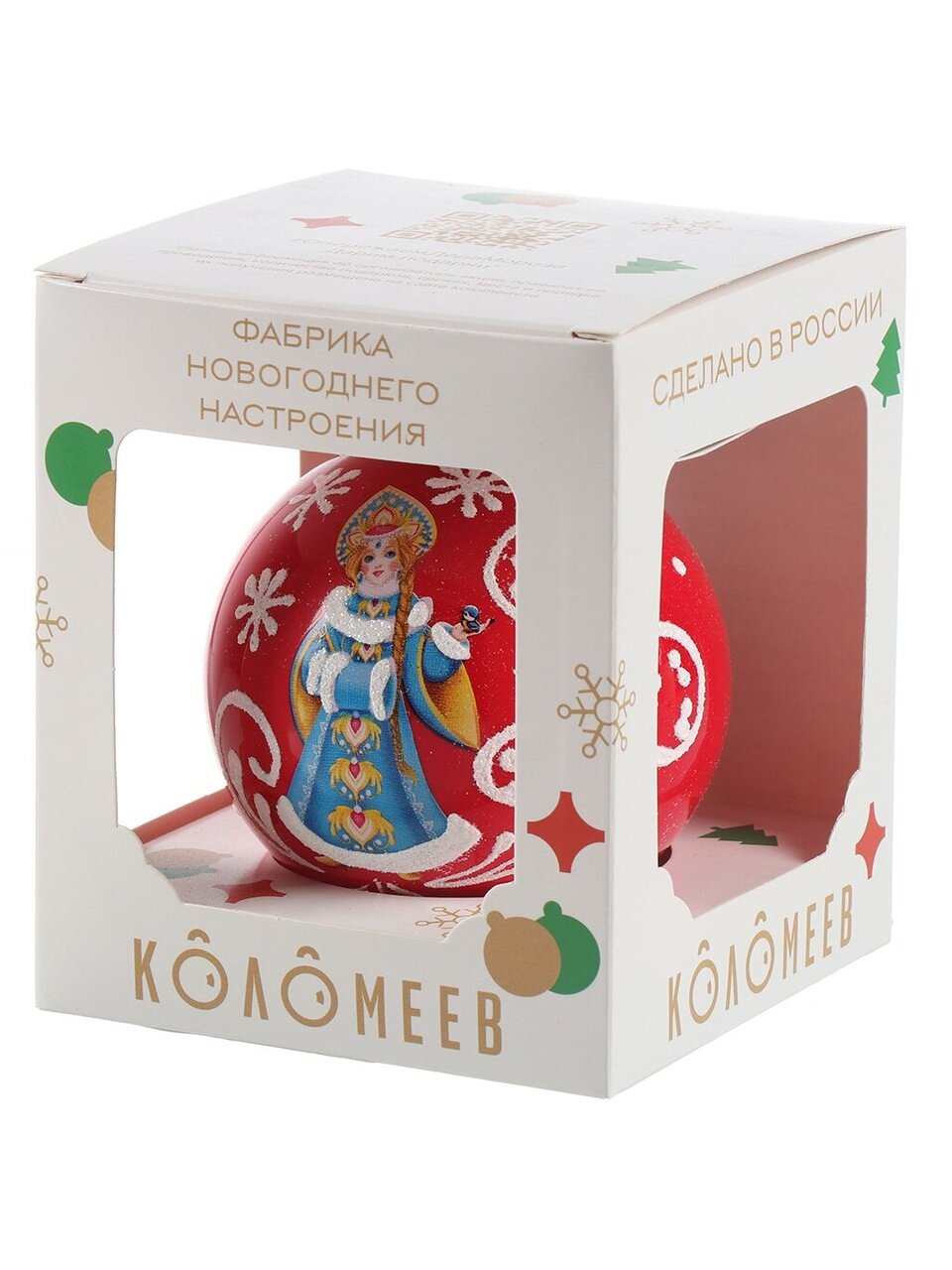 Елочный шар «Расписная Снегурочка» 8 см — идеальный подарок и стильное украшение для новогодней елки. Ручная роспись, стекло, подарочная коробка.