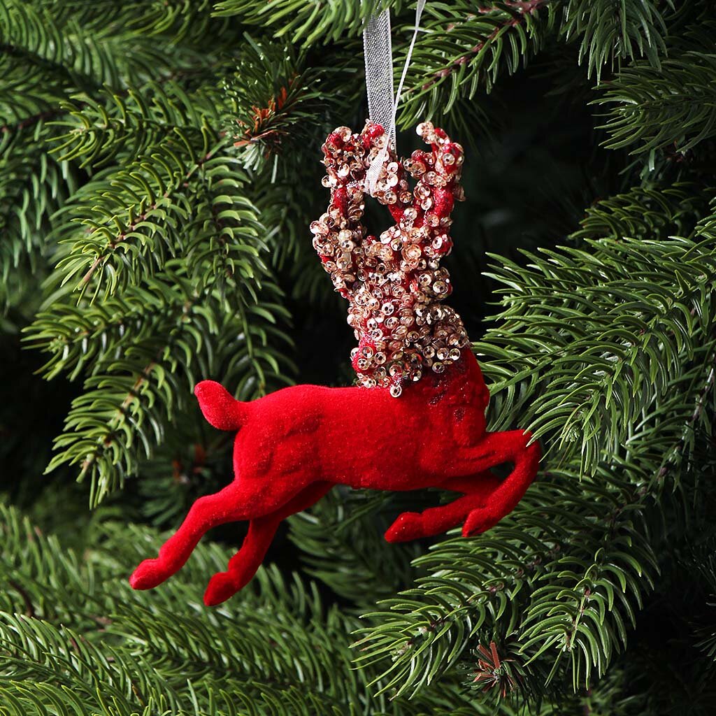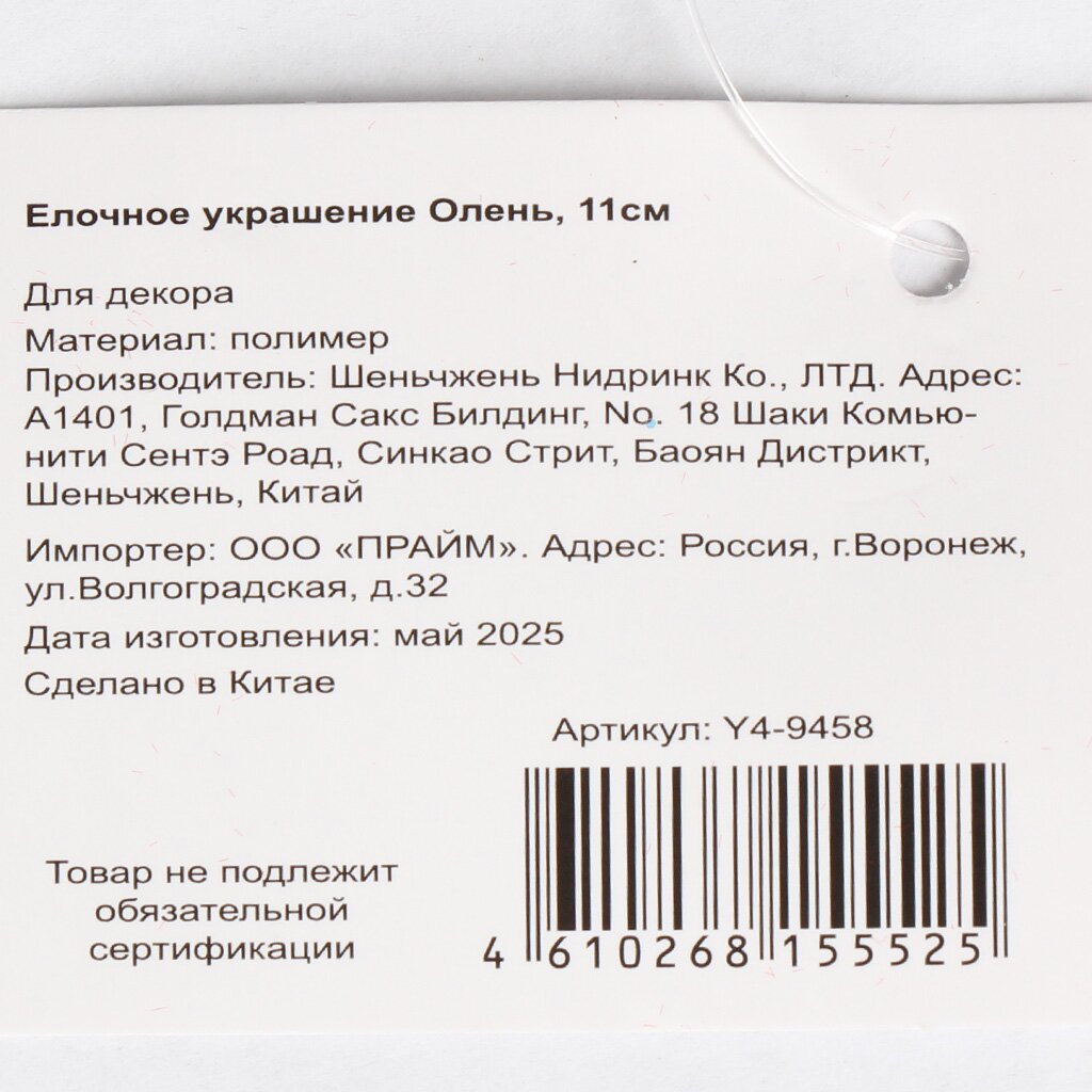 Елочное украшение Олень 11 см: стильный акцент для новогодней елки и уличного декора, безопасный для детей, не бьется и не тускнеет.