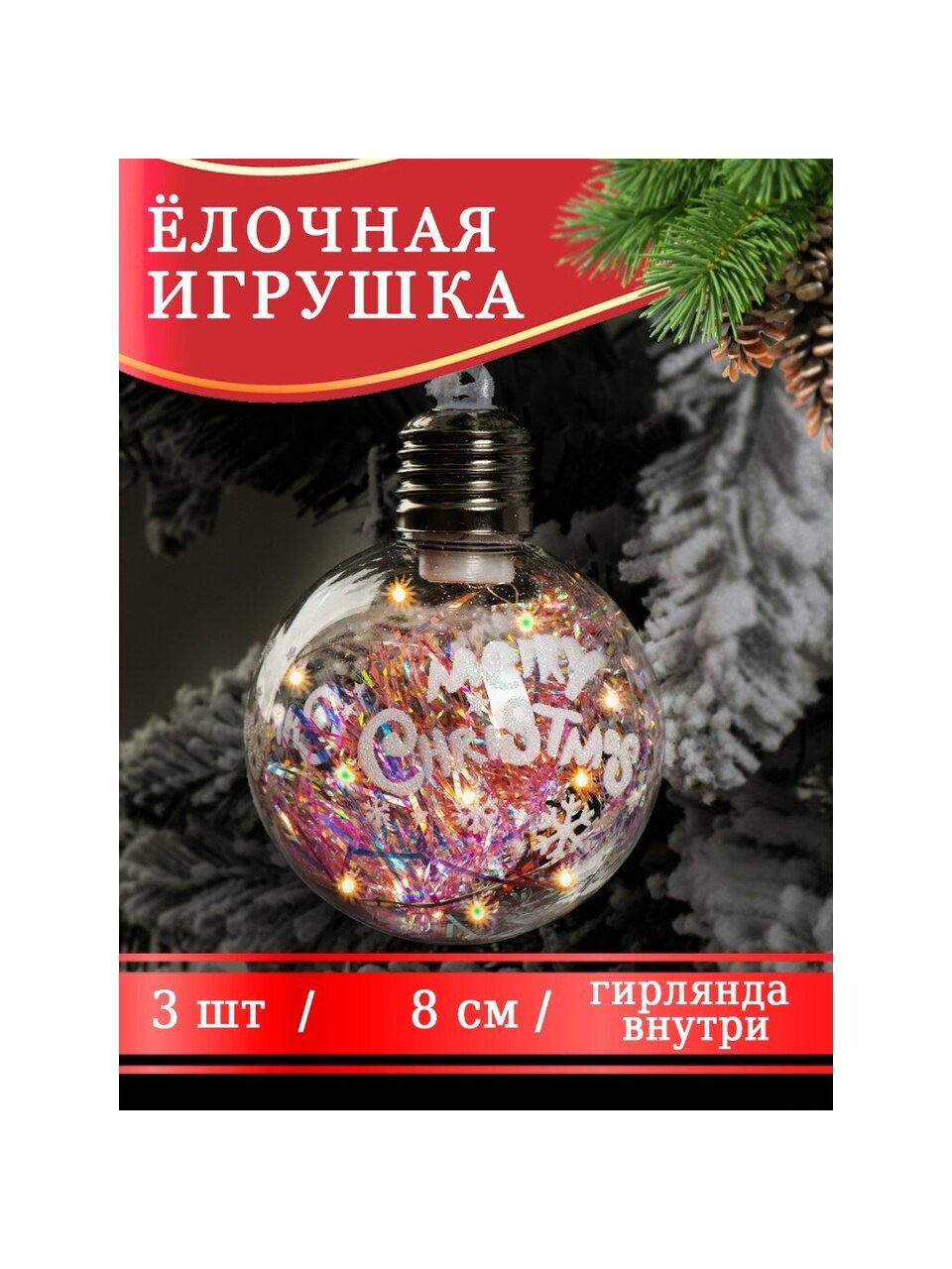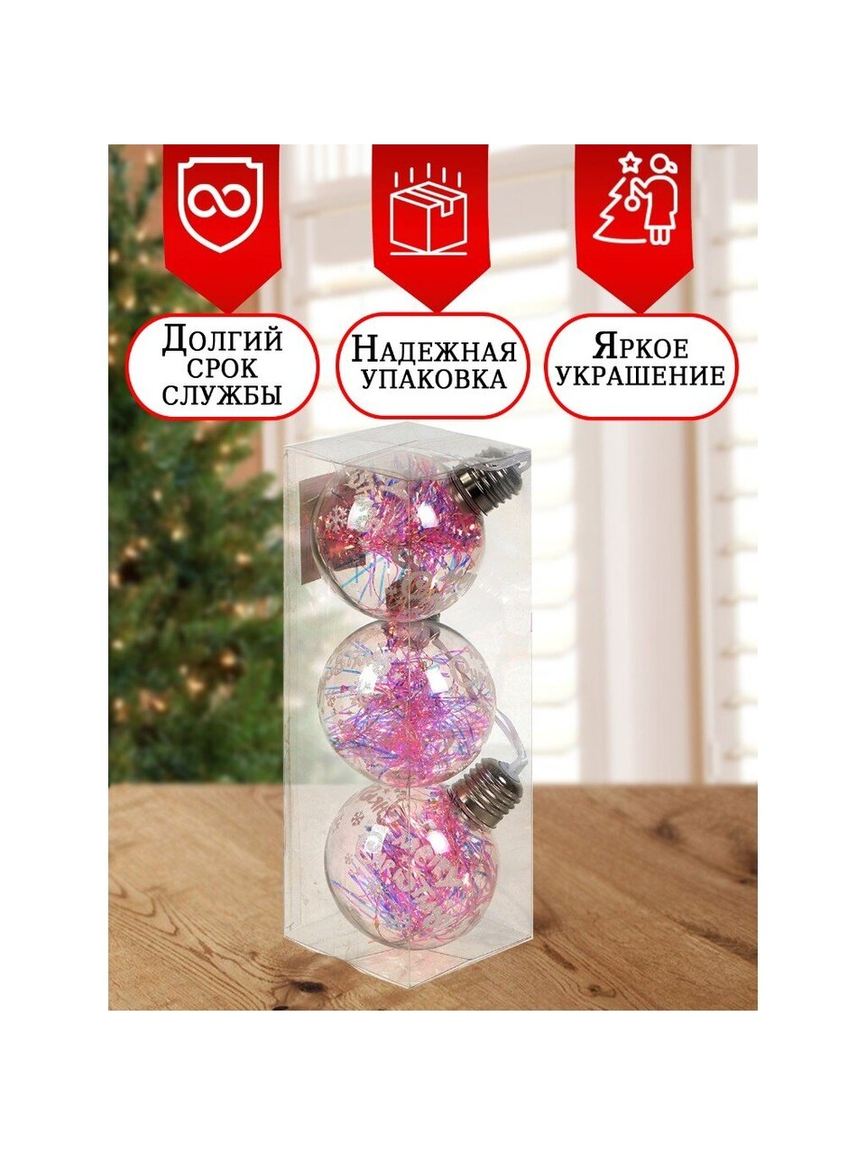 Елочные украшения: набор из 3 прочных игрушек 8 см с подсветкой — эффектный декор для стильной ёлки и уютного праздника без риска разбить.