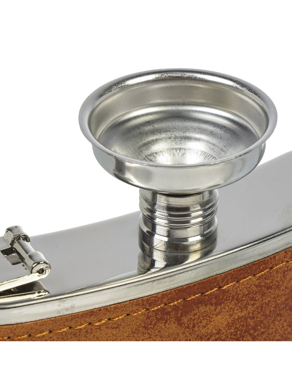 Этот стильный аксессуар можно взять и в командировку, и на пикник, и на дачу. Поэтому дарить его можно мужчинам любого возраста и любой профессии. Подарочная фляжка имеет герметичную металлическую крышку, она легко закрывается и надёжно защищает от протечек.