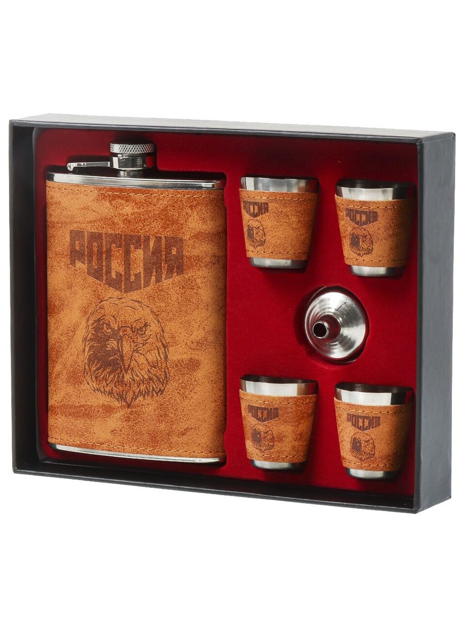 - Фляга и рюмки выполнены из высококачественной пищевой нержавеющей стали и надежно зафиксированы в подарочной коробке.
