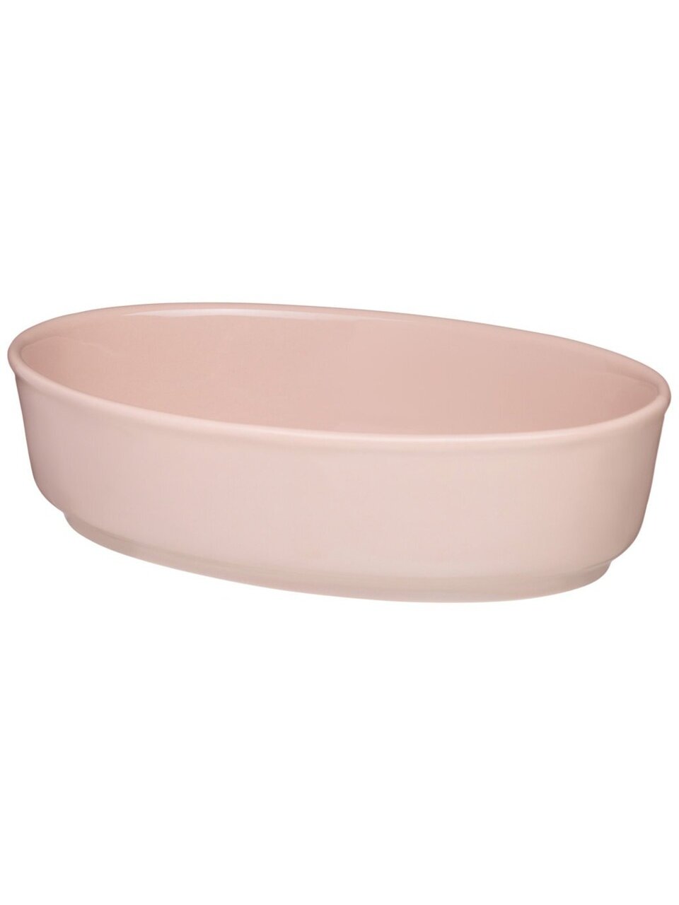 Ширина — 17 см, длина — 26 см, высота — 6.5 см, объём — 0.8 литра; форма — овальная, цвет — пудровый (розовый).