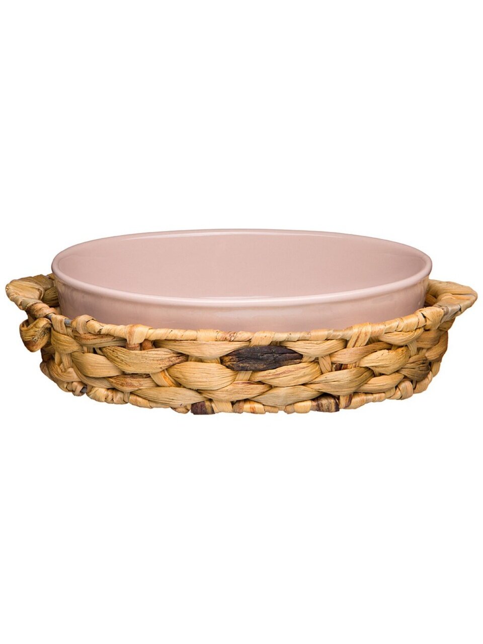 Блюдо овальное фарфоровое 0.8 л Bronco Fusion: стильное решение для запекания и сервировки, подходит для духовки и СВЧ, в плетёной корзине, премиум-качество.