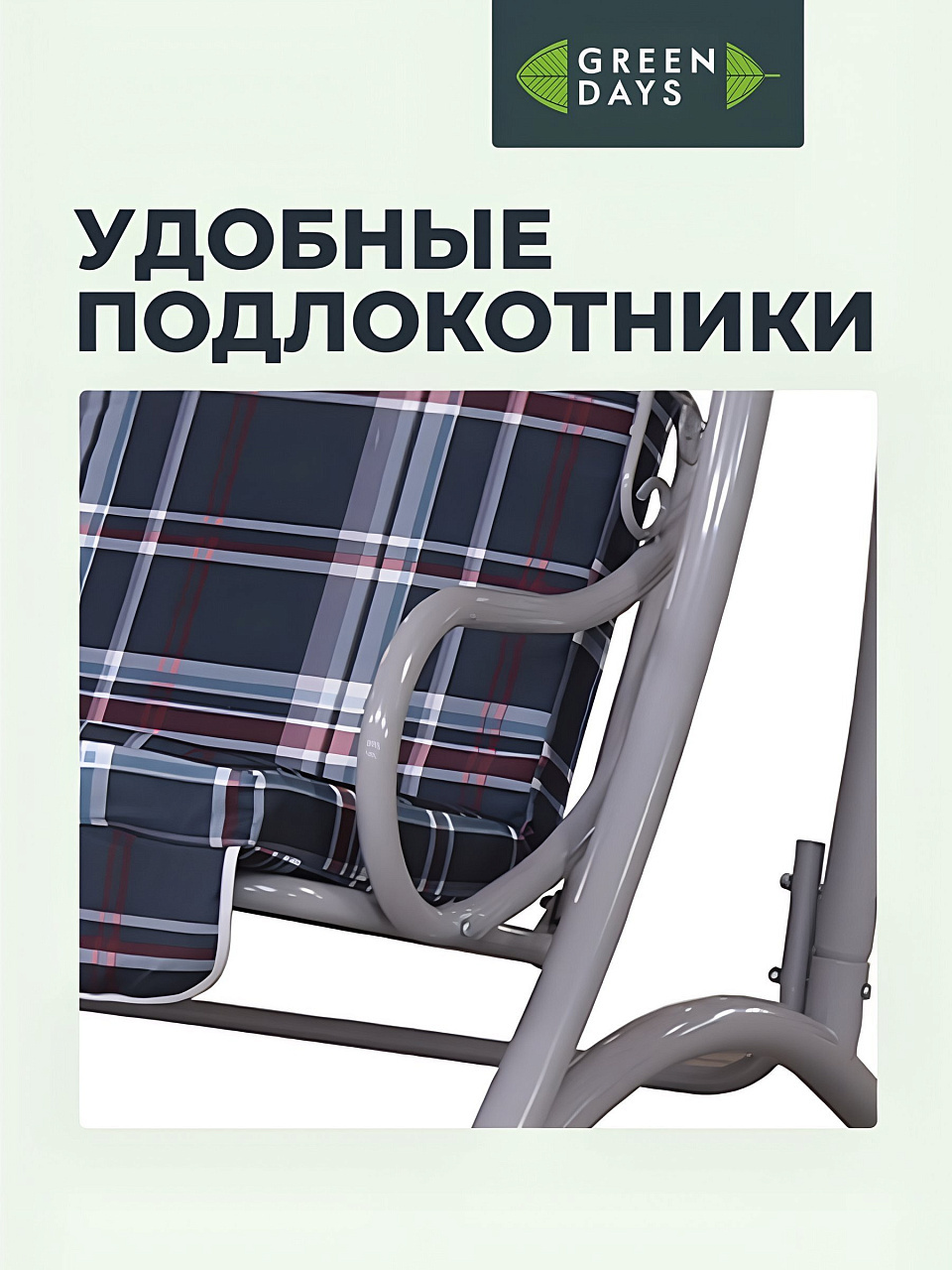 Приобретая садовые качели Green Days, вы получаете не только стильный элемент ландшафтного дизайна, но и возможность создать уютный уголок для отдыха. Водонепроницаемый полиэстер тента защитит от дождя и солнца, делая отдых комфортным в любую погоду. Эти качели станут вашим любимым местом для чтения, общения или просто созерцания природы.