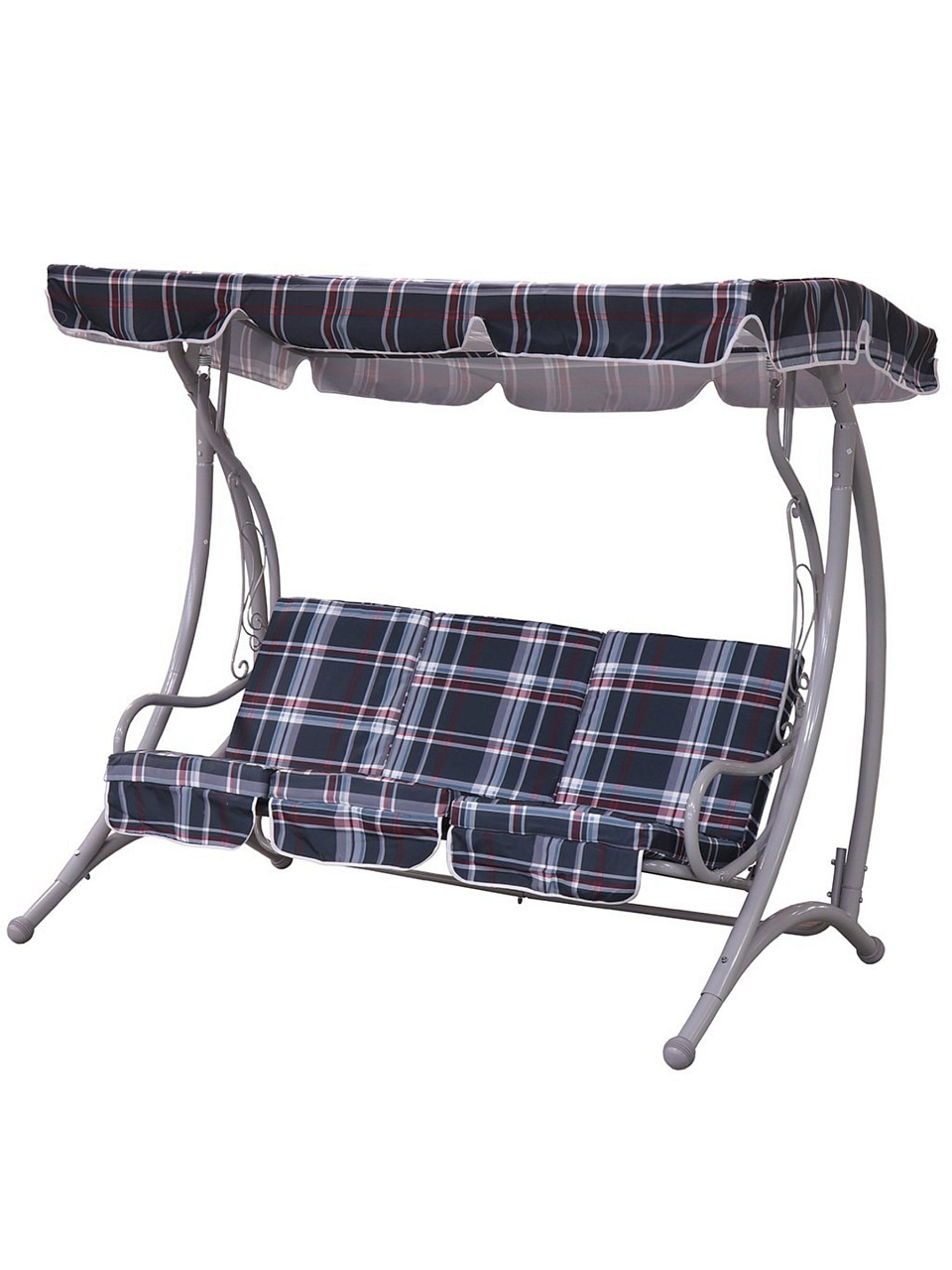 Садовые качели Green Days обладают вместительностью на три человека, что позволяет наслаждаться отдыхом в компании близких. Максимальная нагрузка до 240 кг гарантирует безопасное использование, а прочный металлический каркас обеспечивает долговечность и надежность. Эти качели не только практичны, но и эстетически привлекательны благодаря стильной серой расцветке с клетчатым рисунком, что добавляет им изысканности и современности.