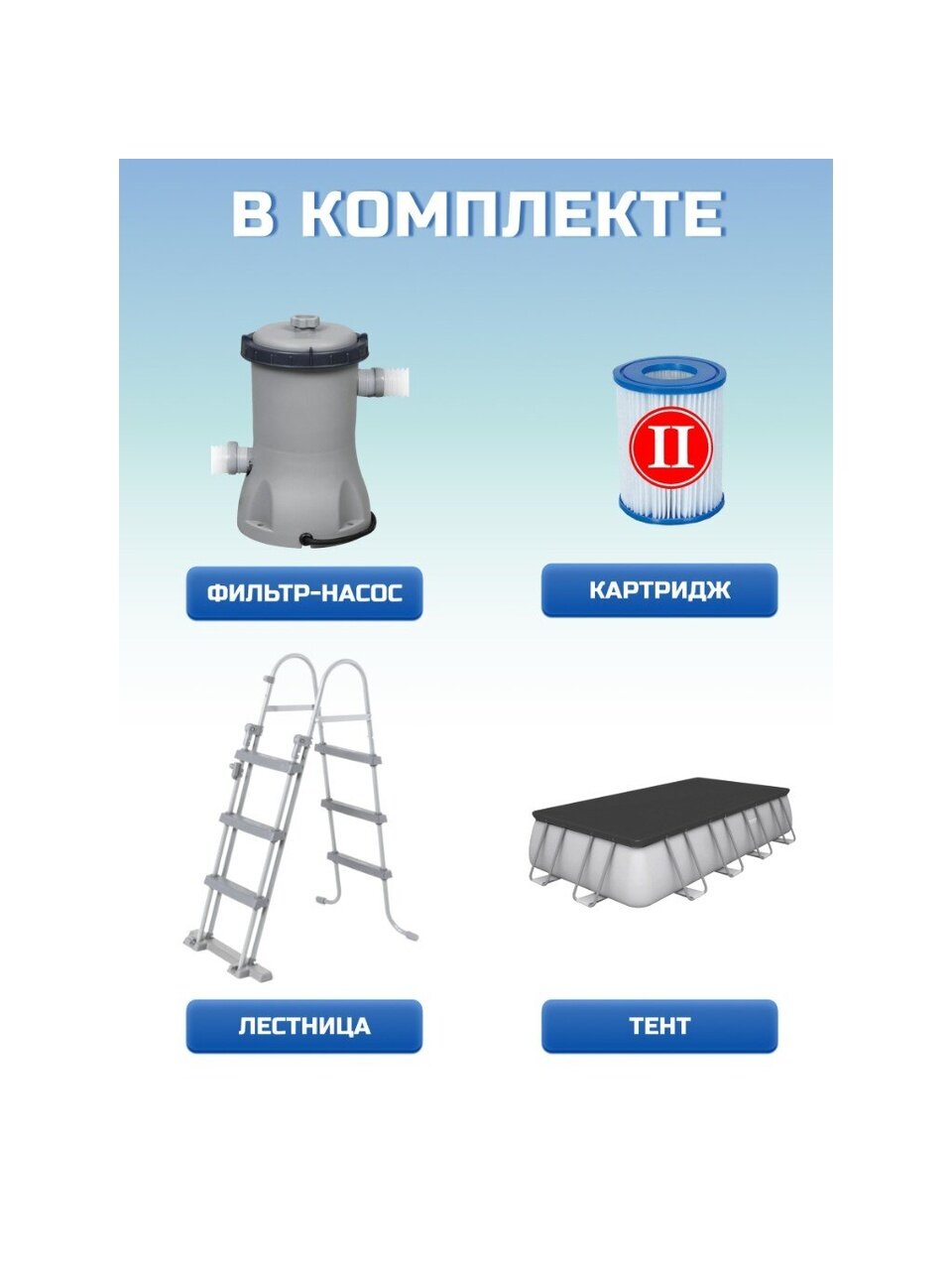 Погрузитесь в мир летнего отдыха с каркасным бассейном Bestway Power Steel Rectangular! Этот бассейн идеально подходит для дачи, обеспечивая комфорт и прохладу в жаркие дни. Надежный и долговечный, он станет центром притяжения для всей семьи и друзей. С легкостью установите его в своем дворе и наслаждайтесь беззаботным отдыхом.