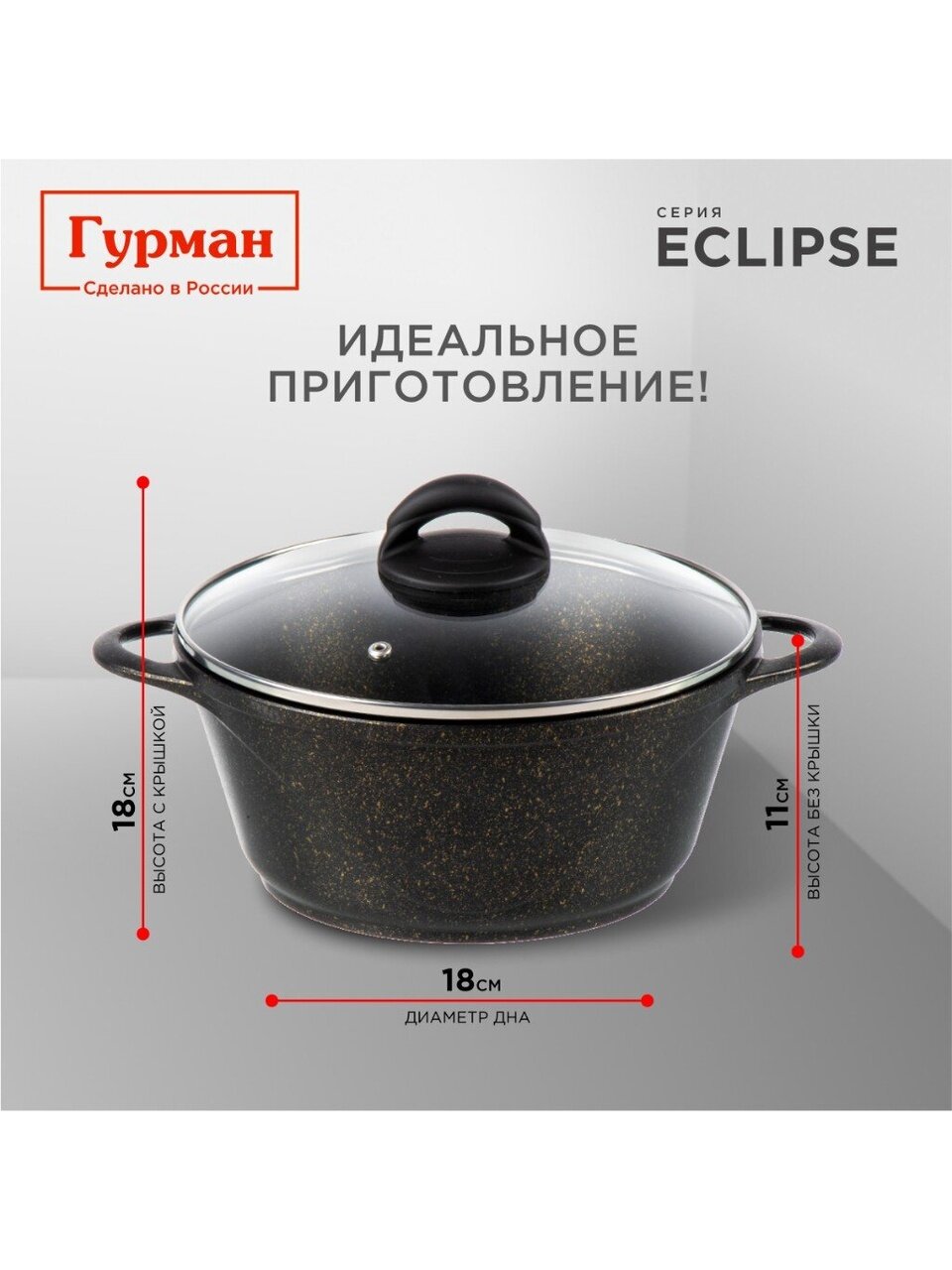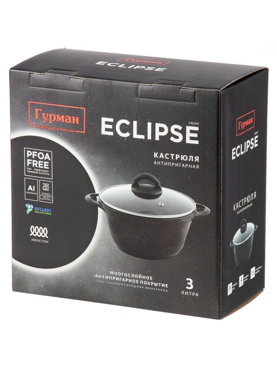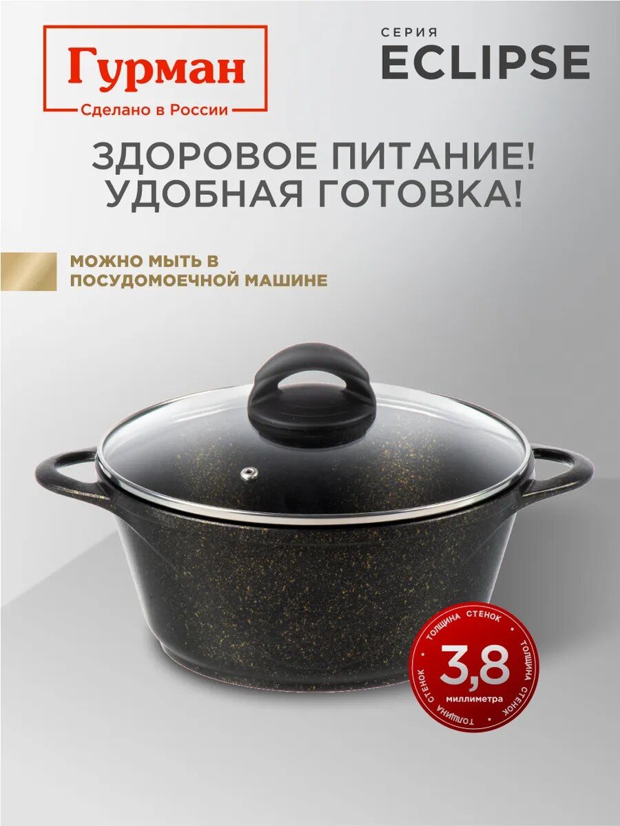 Кастрюля алюминиевая 3 л с гранитным антипригарным покрытием и стеклянной крышкой: идеальный выбор для индукции, дома и дачи. Гурман Eclipse — надежно, удобно, выгодно.