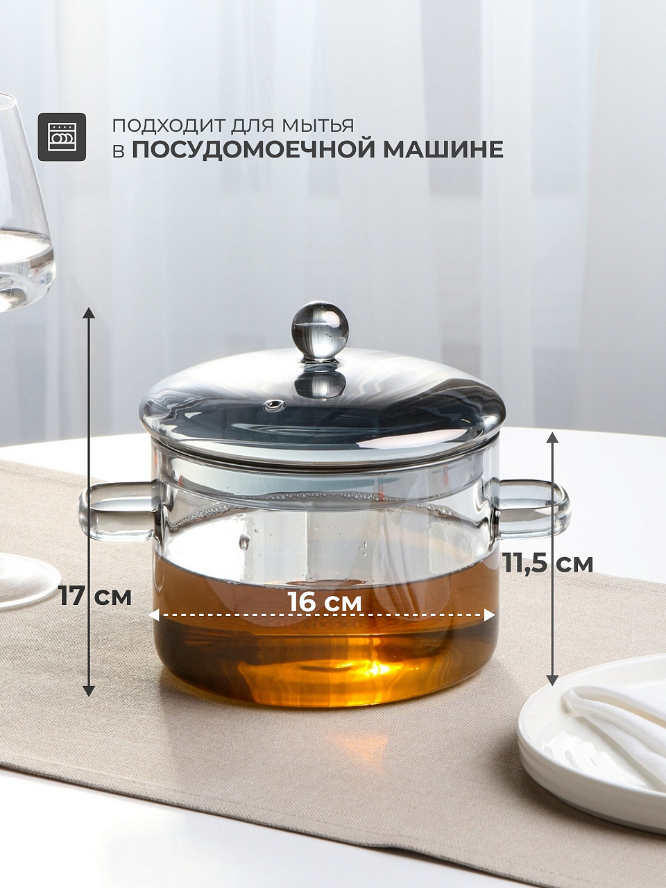 Как использовать кастрюлю из стекла? Просто: готовьте супы, запекайте овощи, разогревайте блюда прямо в микроволновке или духовке без пересыпания. Кастрюля не впитывает запахи, легко очищается, а прозрачные стенки позволяют контролировать процесс приготовления. Подходит ли для индукционных плит? Нет, предназначена для СВЧ, духовых и электрических плит. Вопрос «чем отличается от керамики» — стекло легче, не трескается от резких перепадов температуры и долговечнее.