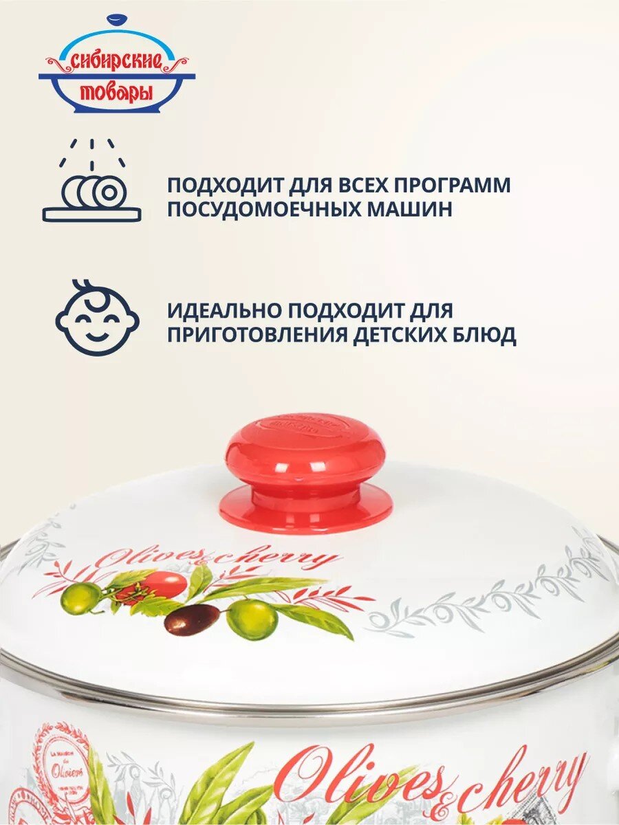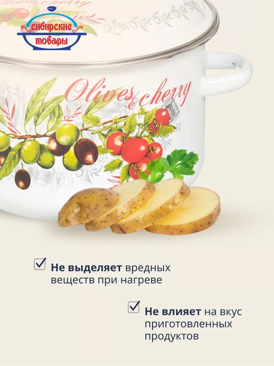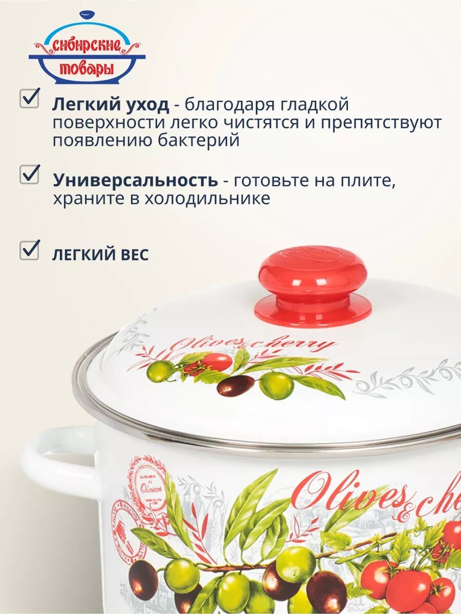 Эмалированная кастрюля 4 л с крышкой из стали — универсальное решение для дома и дачи: подходит для индукции, легко моется, стильный дизайн «Оливки и черри».