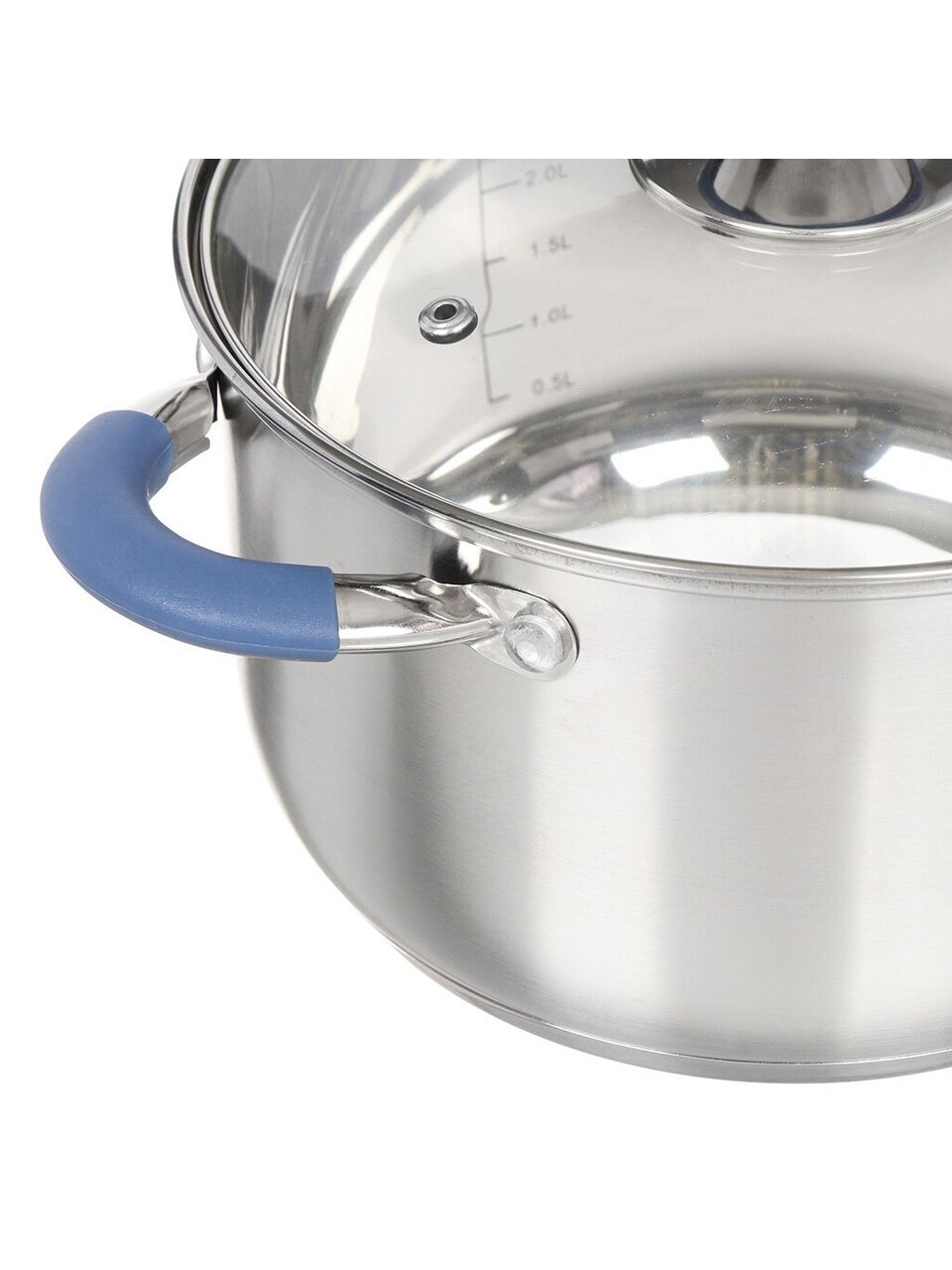 Объем кастрюли — 4,75 литра, мерная шкала нанесена на внутреннюю поверхность для точного контроля количества жидкости.