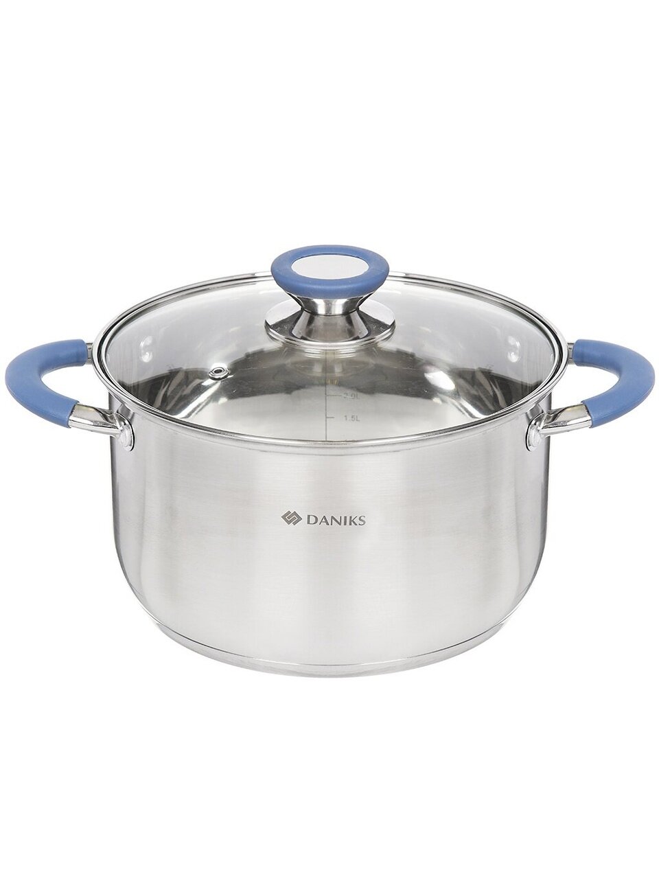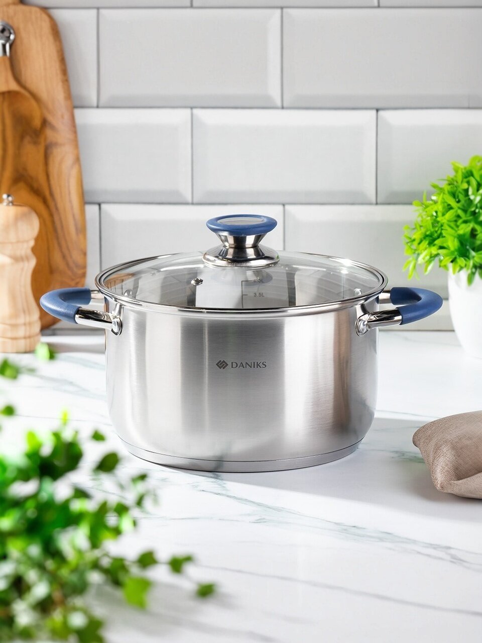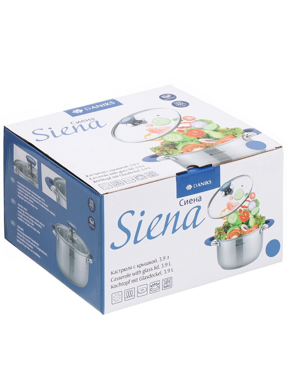 Кастрюля из нержавеющей стали Daniks Siena 4,75 л с капсульным дном и стеклянной крышкой — оптимальный выбор для индукционных и любых других плит. Готовьте дома, на даче или в подарок с выгодой!