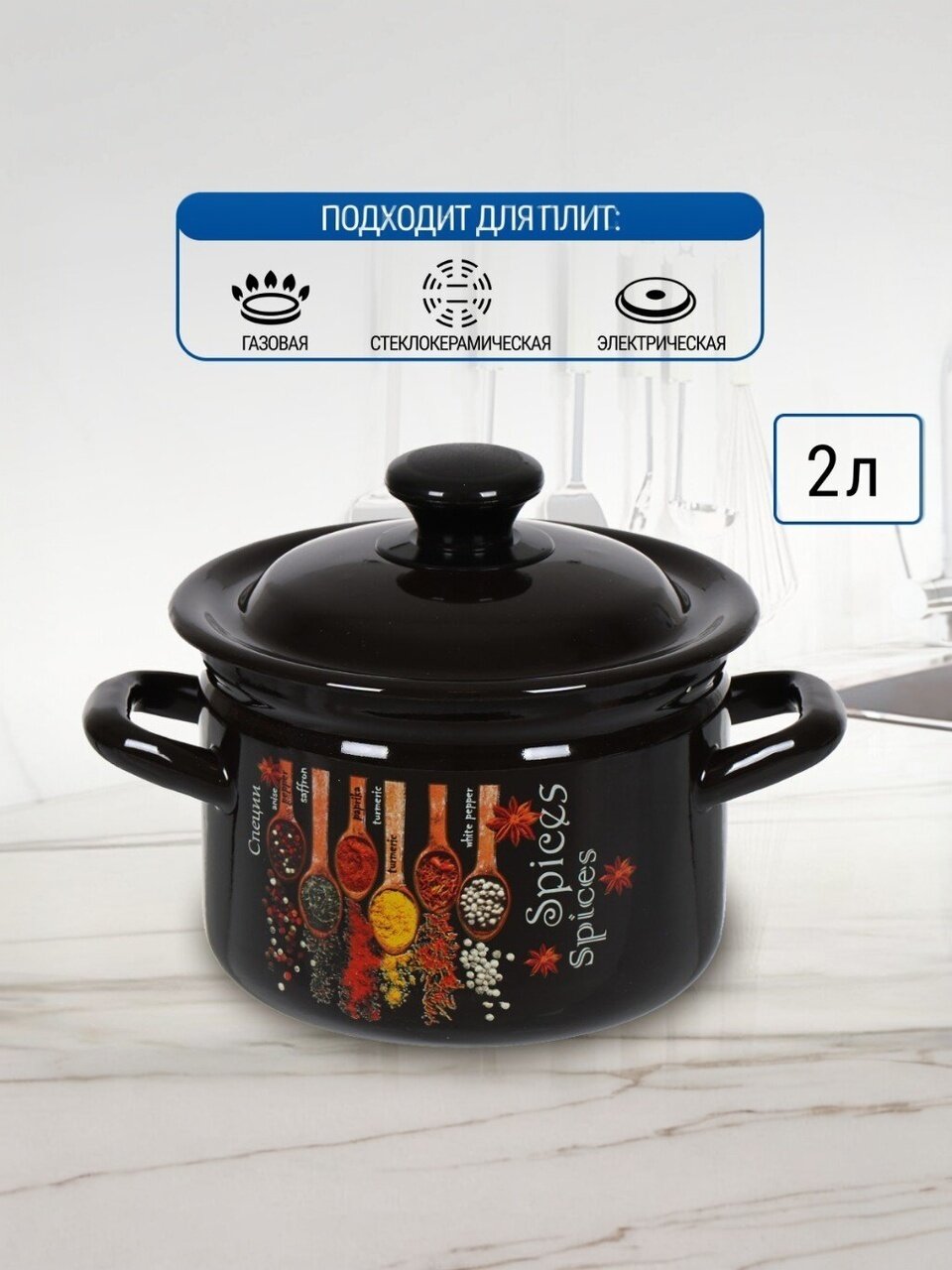 - Компактный объём 2 литра, диаметр 15 см, толщина дна 0,7 мм — оптимально для небольших семей и быстрой готовки.