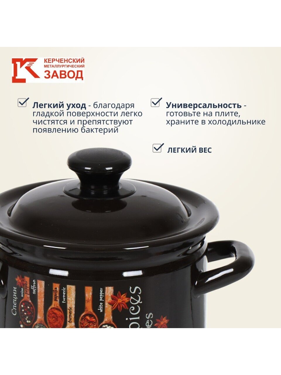 Эмалированная кастрюля 2 л Керченский металлургический завод: долговечность, стильный декор и оптимальный объём для семьи. Решение для кухни и дачи — по выгодной цене.
