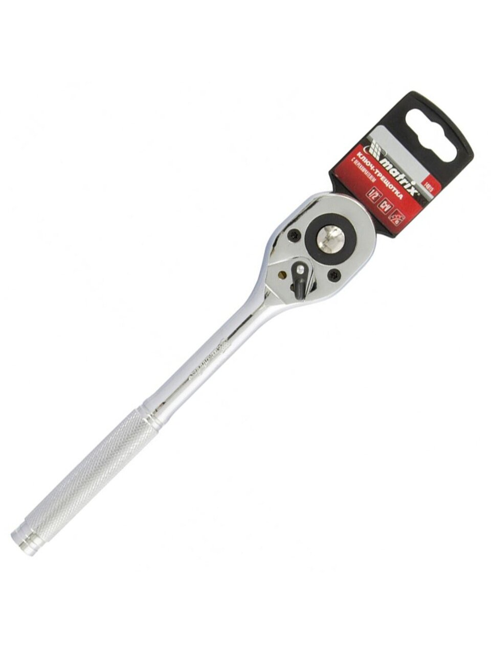 Ключ-трещотка — ручной инструмент для монтажа и демонтажа резьбовых соединений. Совместим с торцевыми головками, имеющими посадочное гнездо 1/2 дюйма. Оснащен храповым механизмом, облегчающим работу в труднодоступных местах. Инструмент применяется для ремонта техники, автомобилей, также используется в быту.