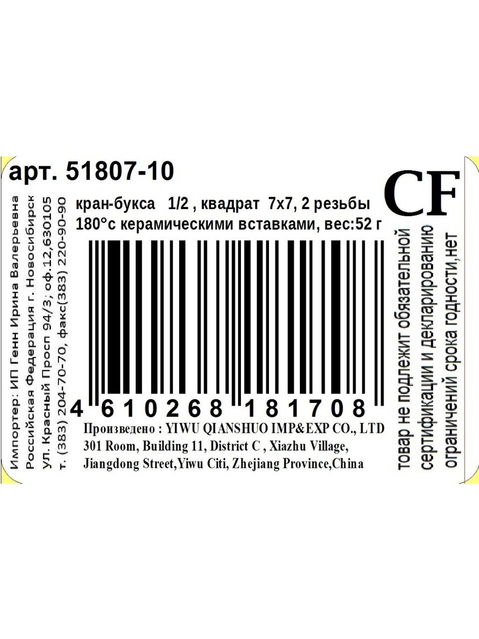 Кран-букса 1/2'' ComfortFactor 51807-10 — надежное решение для ремонта и обновления сантехники. Благодаря керамической вставке обеспечивается плавное и долговечное переключение. Квадрат 7*7 мм и угол поворота 180° подходят для большинства смесителей. Компактная индивидуальная упаковка облегчает хранение и транспортировку. Выгода: экономия времени и средств на замене сантехнических элементов.