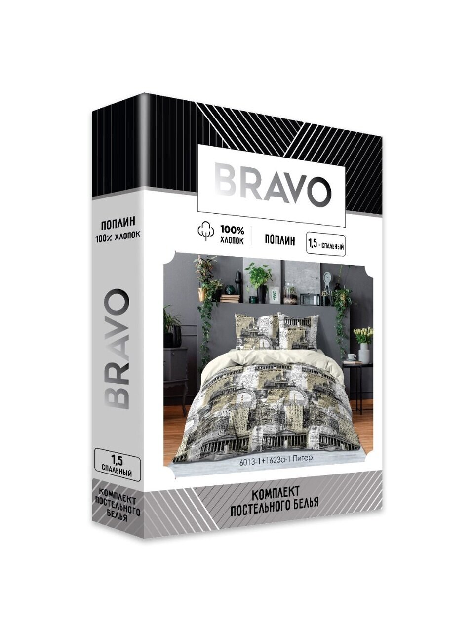 Постельное белье евро Bravo «Питер» из поплина: стильный комплект 4 в 1 для уюта и здорового сна, размер простыни 215х240 см, подарочная упаковка.