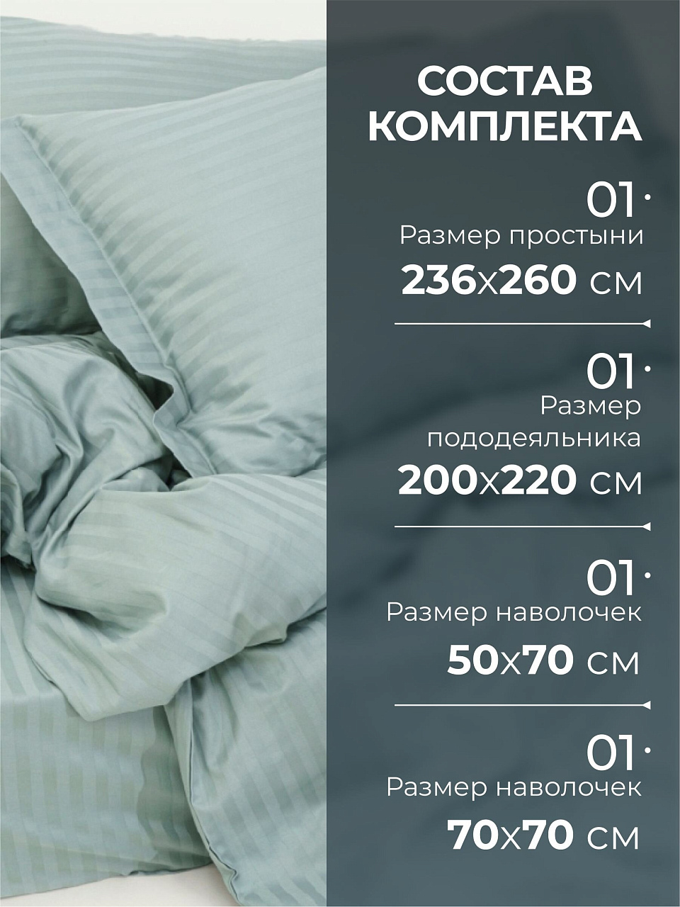 - Стильный комплект из страйп-сатина: мягкое прикосновение, долговечность, эффектный мятный цвет