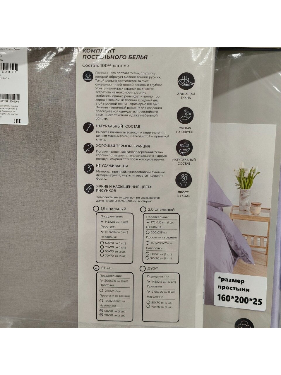 Комплект рассчитан на стандартные матрасы до 160х200 см и высотой до 25 см. Простыня на резинке обеспечивает плотную посадку без сползания.