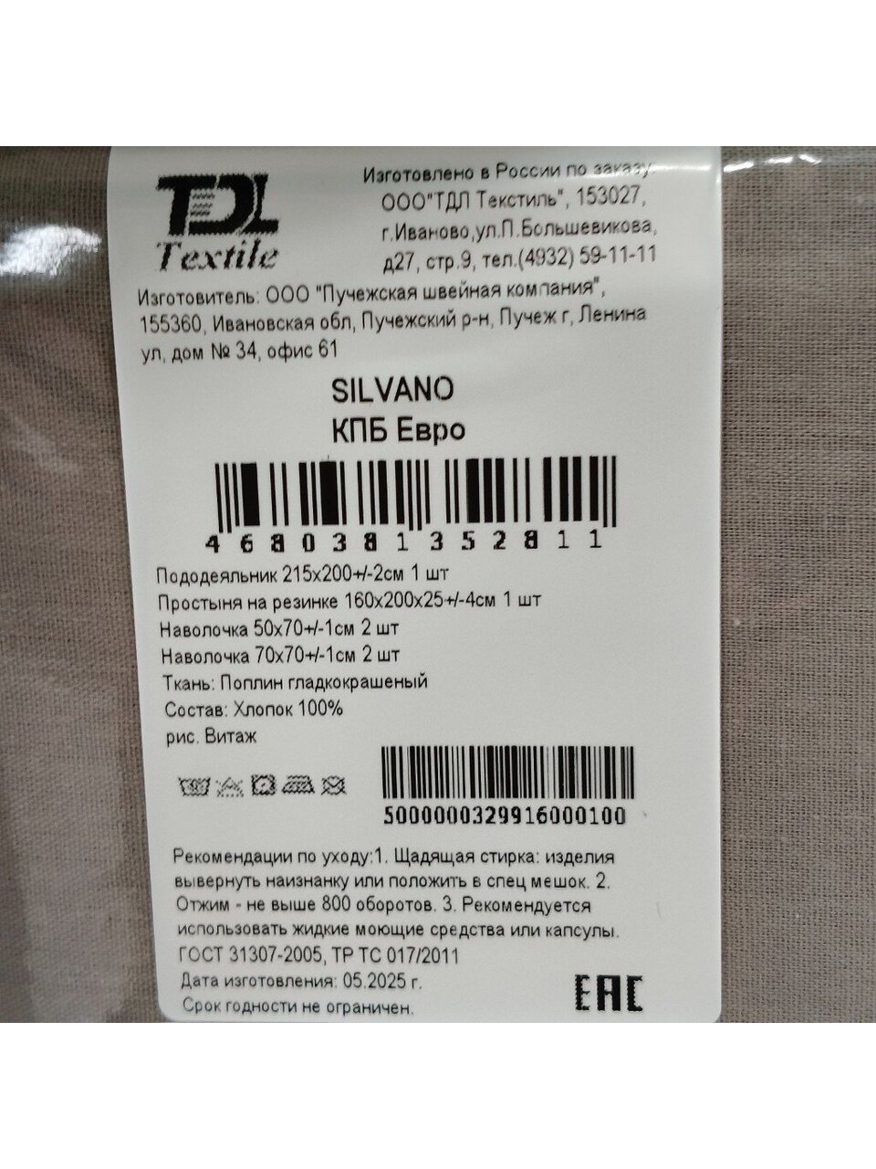 Этот комплект постельного белья евро Silvano «Витаж» произведён из 100% хлопкового поплина — материала, который ценится за прочность, мягкость и долговечность. Благодаря плотному переплетению нитей поплин дольше сохраняет форму и насыщенность цвета даже после многократных стирок при 40 градусах. Простыня на резинке 160х200х25 см надёжно фиксируется, не образует складок и не скользит, что особенно важно для активного сна и для детских кроватей.