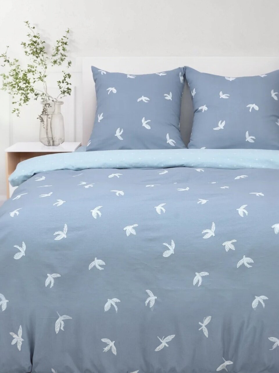 В отличие от аналогичных комплектов из синтетических тканей, бязь сохраняет форму и яркость рисунка после многократных стирок при 40 градусах. Комплект не имеет резинки на простыне и застёжки на пододеяльнике, что облегчает уход и делает его универсальным для разных типов кроватей. Часто спрашивают: подходит ли этот комплект для подарка? Да, благодаря подарочной упаковке и нейтральному голубому цвету, комплект станет отличным презентом для друзей или родственников.