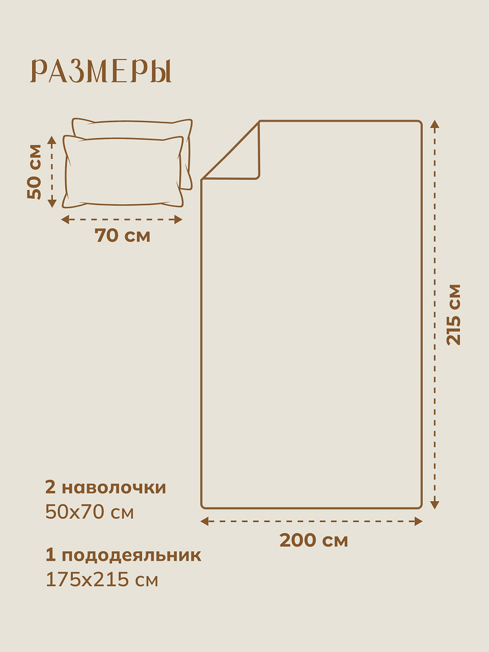 - Универсальный евро-размер (пододеяльник 200×215 см, 2 наволочки 50×70 см) — подходит для большинства кроватей.