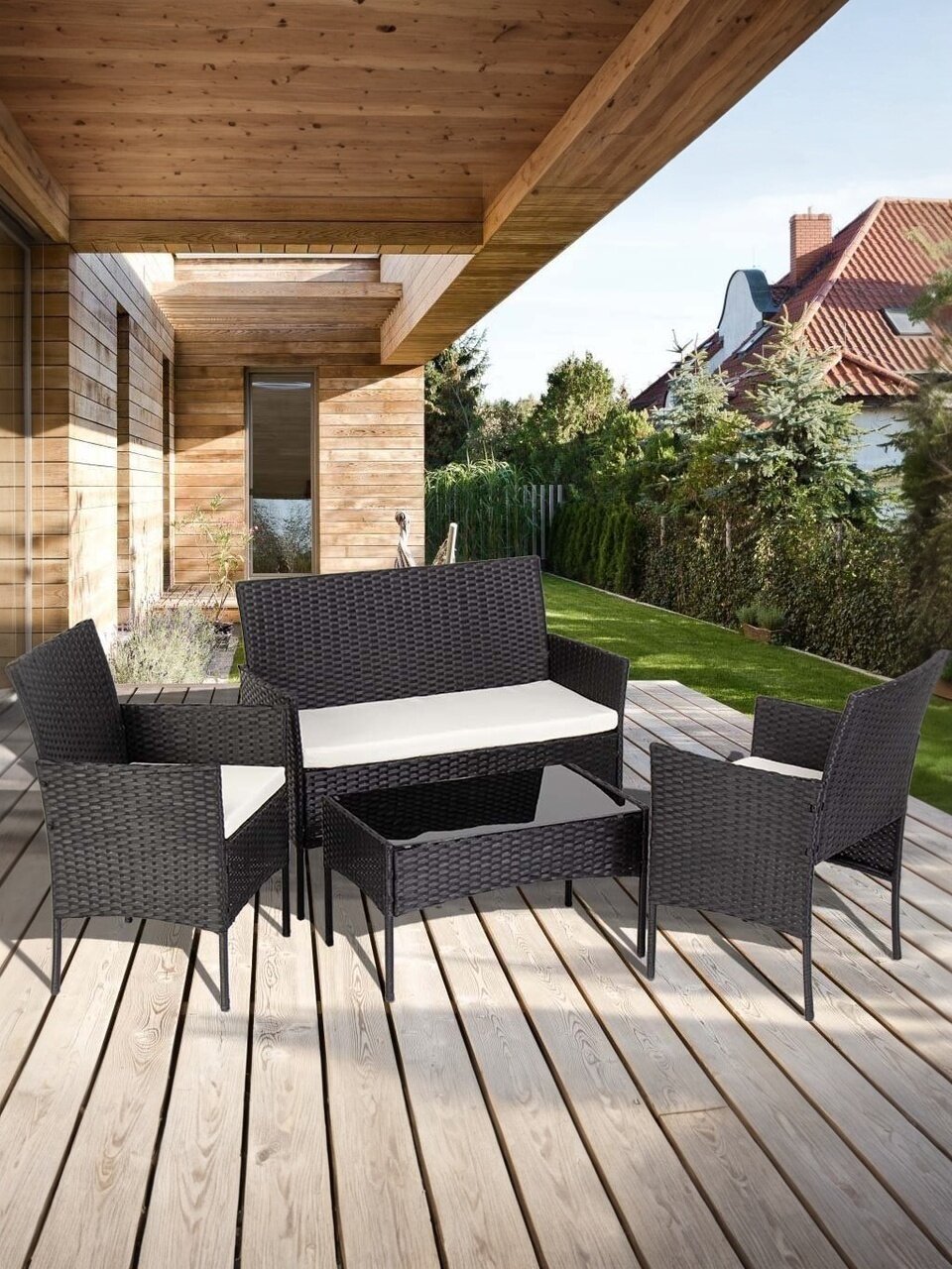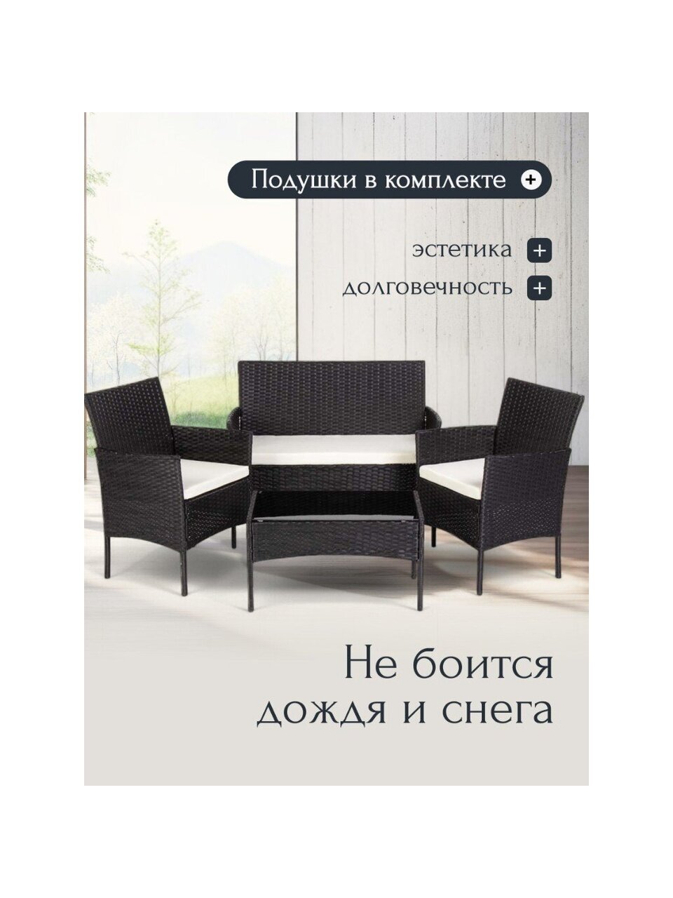 Представляем мебельный комплект "Миранда" - идеальное решение для создания уютной атмосферы в саду или на террасе. Этот стильный и функциональный набор, выполненный в элегантном черном цвете, станет отличным дополнением к любому экстерьеру, подчеркивая ваш безупречный вкус и чувство стиля. Мебель имеет металлический каркас. Комплект включает в себя стол, два кресла и диван, что позволяет создать комфортное пространство для отдыха на свежем воздухе.