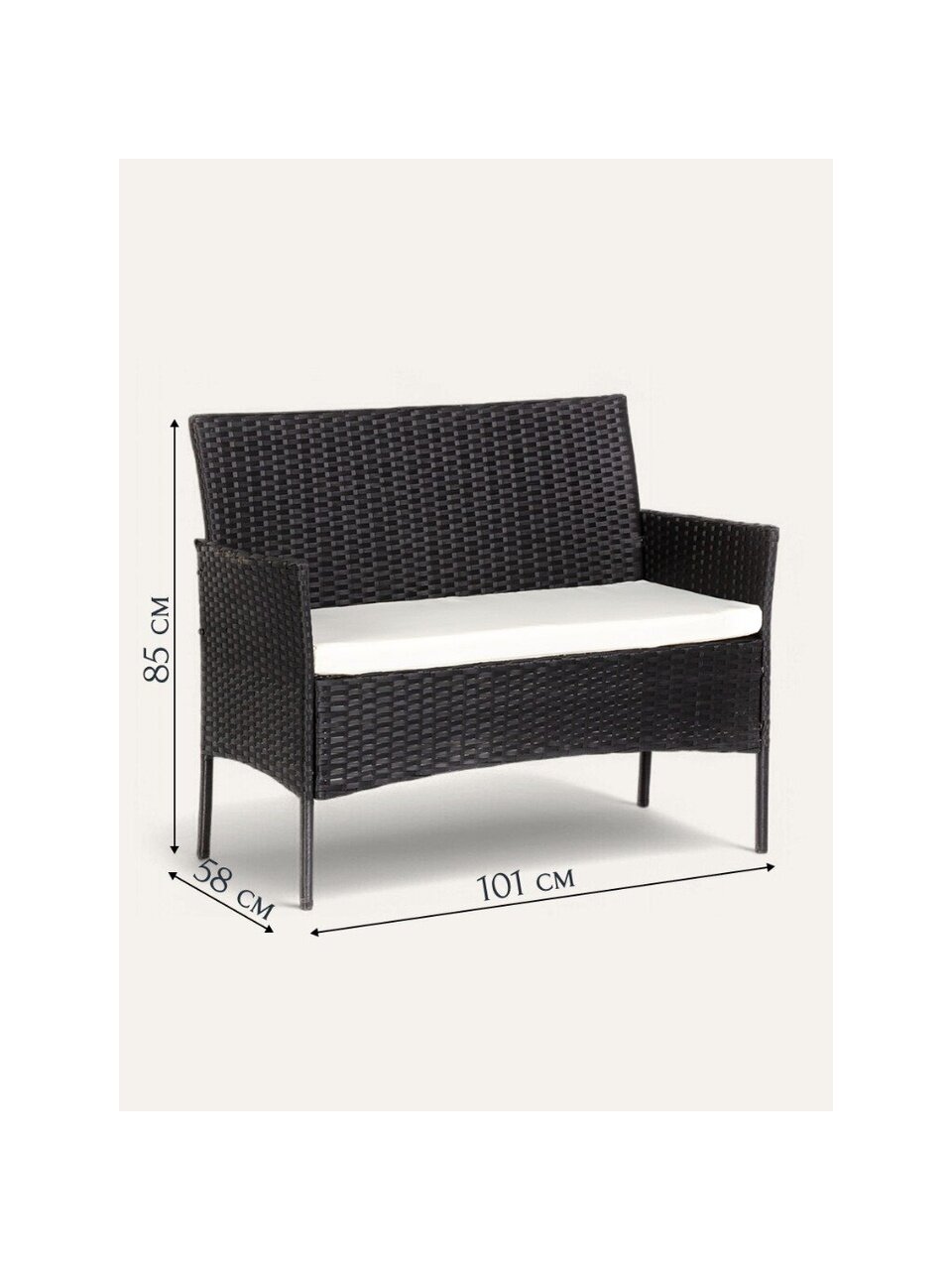 Мебель садовая "Миранда" сочетает в себе современный дизайн и практичность, обеспечивая максимальное удобство в использовании. Размеры стола составляют 71х41х39 см, что делает его компактным и удобным для размещения на небольшой площади. Два кресла размером 57.5х58х84 см обеспечивают комфорт и поддержку, а диван 101х58х85 см позволяет расслабиться и насладиться временем в кругу семьи или друзей.