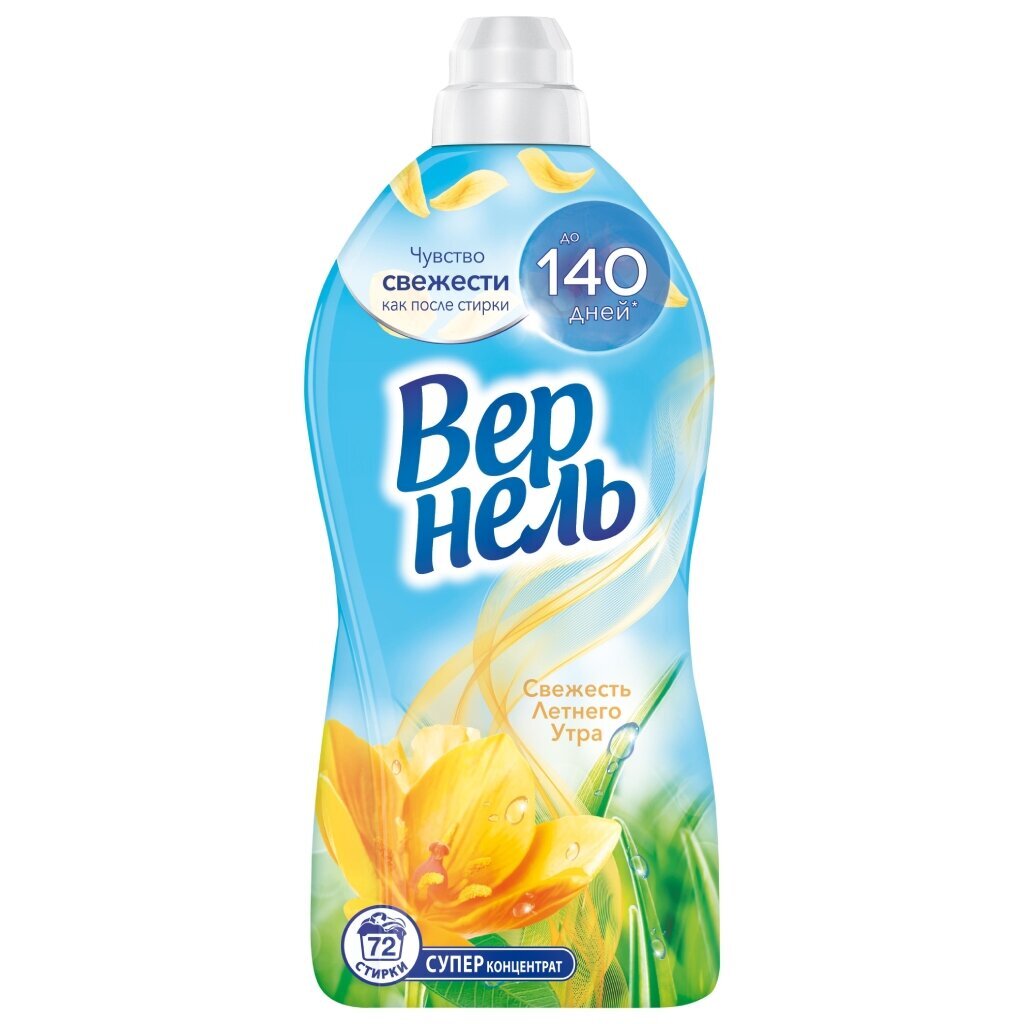 Концентрированный кондиционер для белья Вернель Свежесть Летнего Утра 1,82 л (72 стирки) подарит белью не только невероятную мягкость, но и легкий пробуждающий аромат.