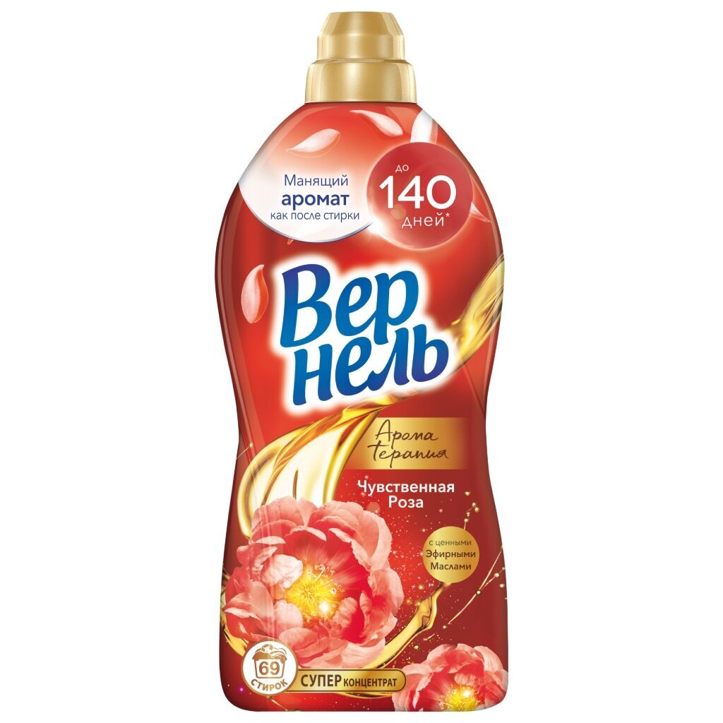 Концентрированный кондиционер для белья Вернель Ароматерапия Чувственная роза 1740 мл (69 стирок) подарит Вашему белью не только невероятную мягкость, но и чувственный яркий аромат дикого гибискуса с нотами роз, а благодаря специальным аромакапсулам в составе кондиционер для стирки Вернель позволит наслаждаться интенсивным ароматом белья до 140 дней.