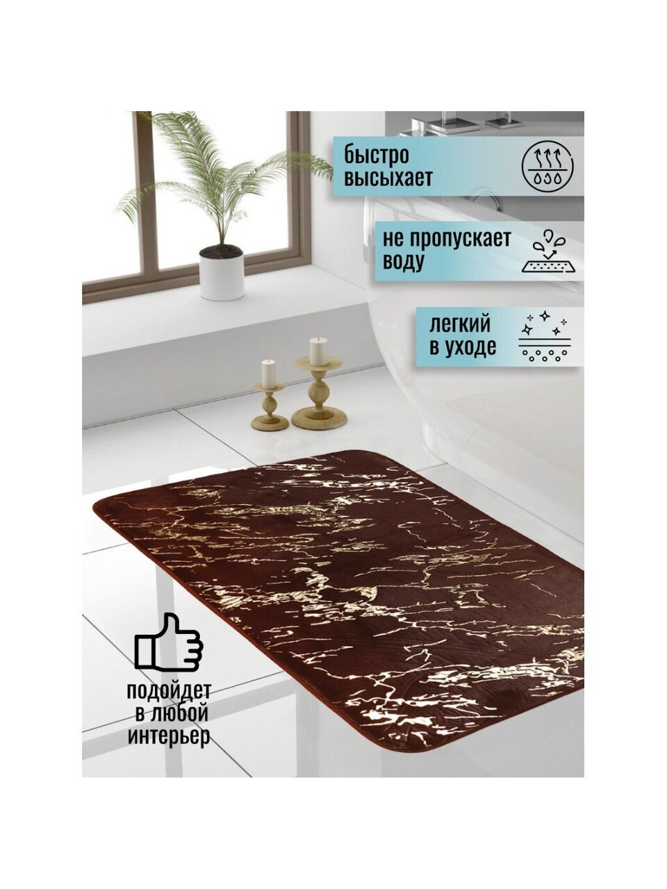 С ковриком на полу заходить в ванную босиком будет приятно даже в холодное время года. Он подарит ощущение тепла и комфорта, а благодаря оригинальному дизайну отлично впишется в разнообразные интерьеры.