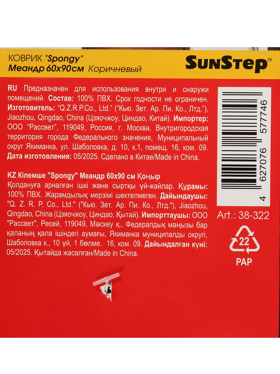 Придверный коврик Sunstep Spongy Меандр (артикул 38-322) — это современное решение для тех, кто ищет, какой коврик выбрать для защиты пола от грязи и влаги. Благодаря влаговпитывающему покрытию и прочной резиновой основе коврик подходит для использования как на улице, так и внутри помещения. Прямоугольная форма и коричневый цвет гармонично впишутся в любой интерьер или экстерьер, а отсутствие ворса облегчает уход и чистку.