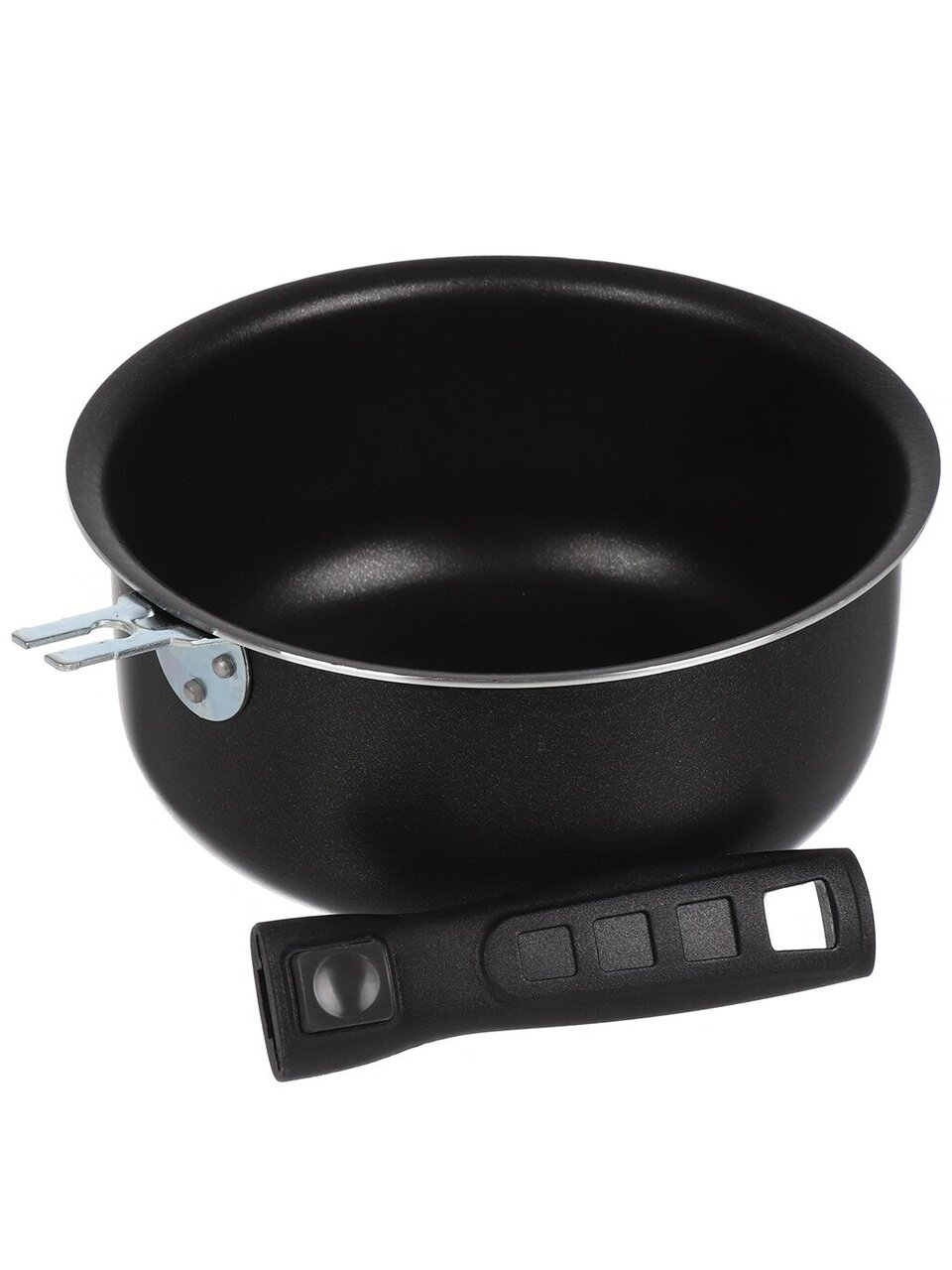 - Удобная съемная ручка позволяет компактно хранить посуду.