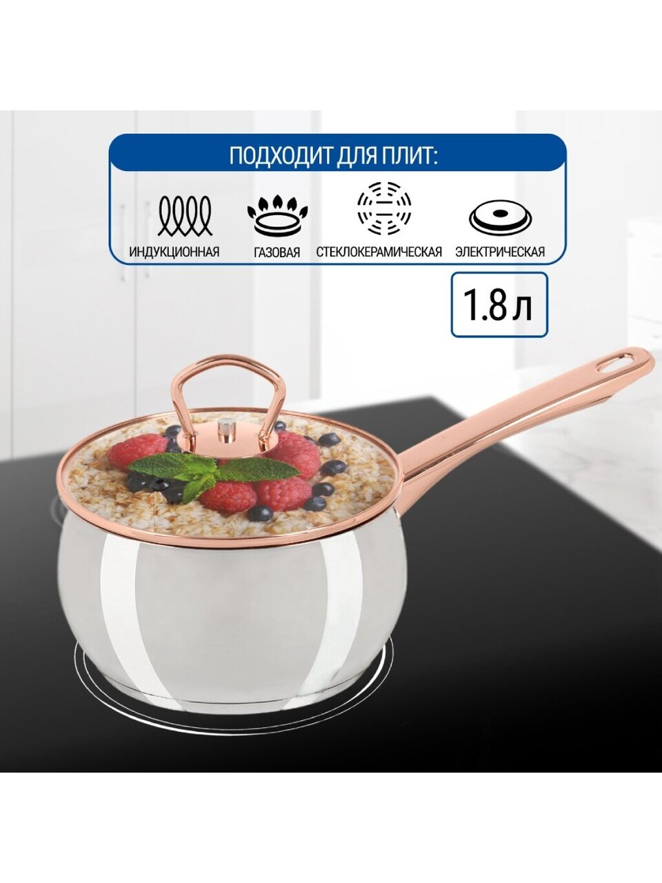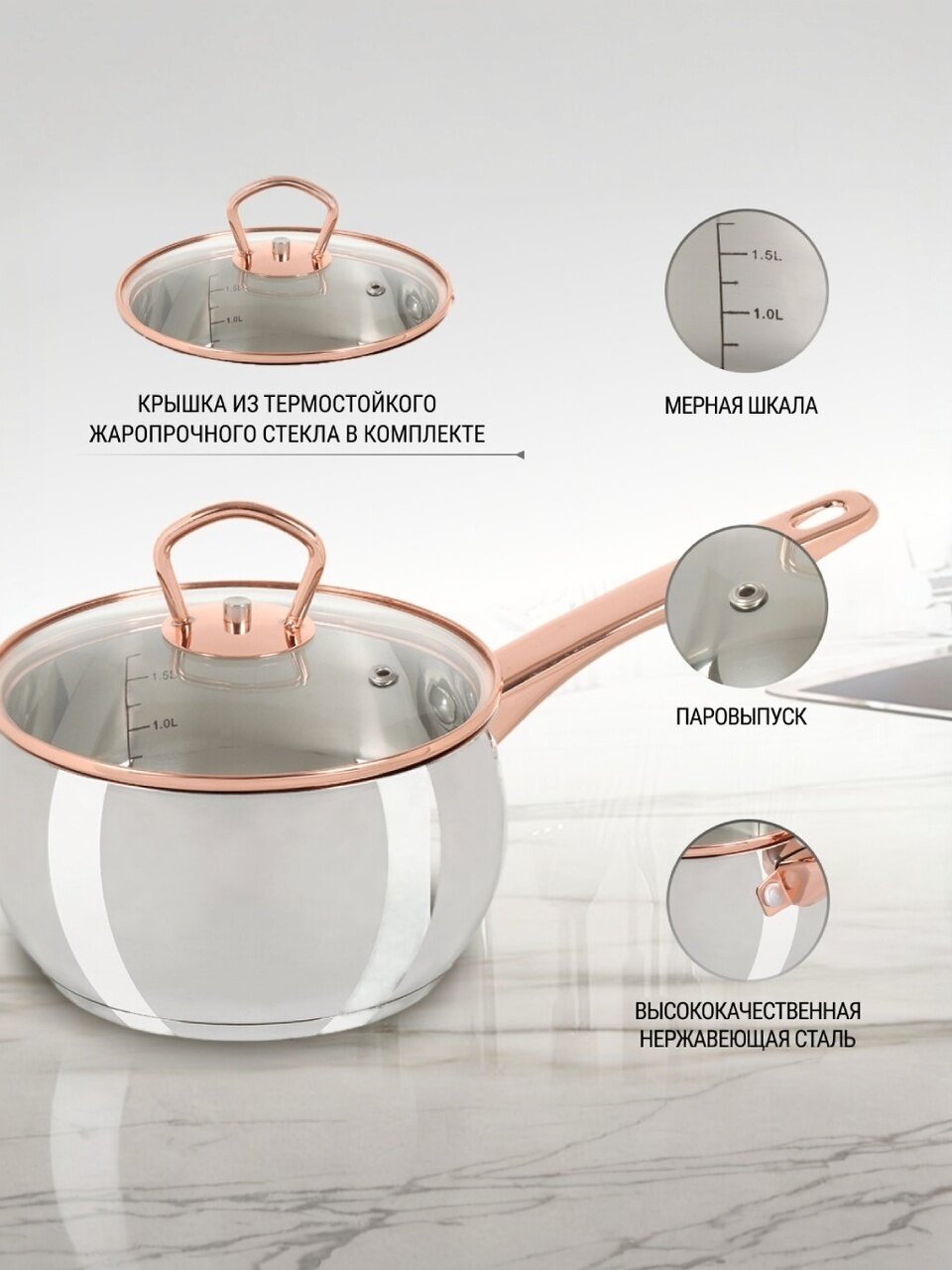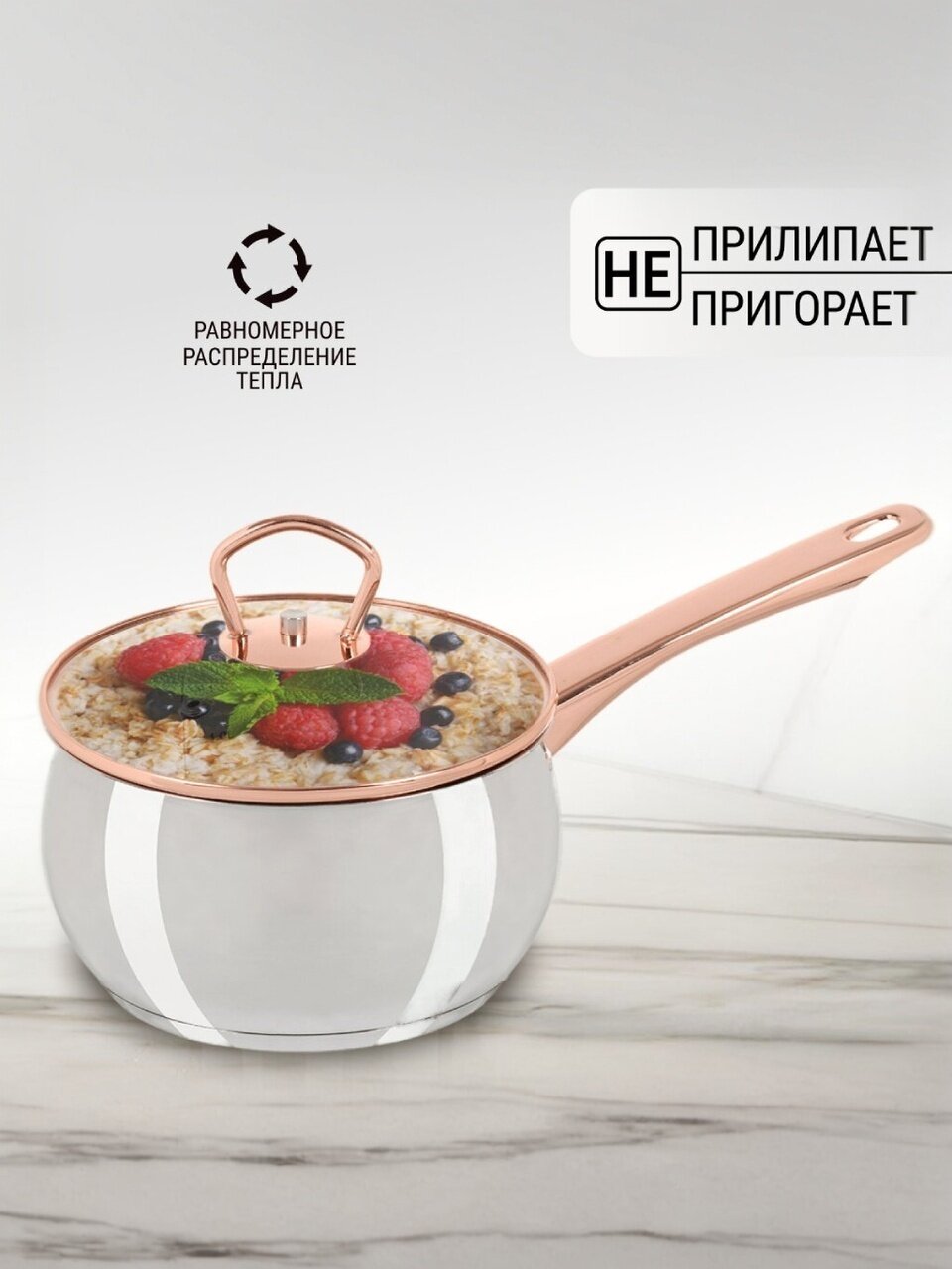 - Металлическая ручка удобна, прочна и не нагревается при использовании посуды;