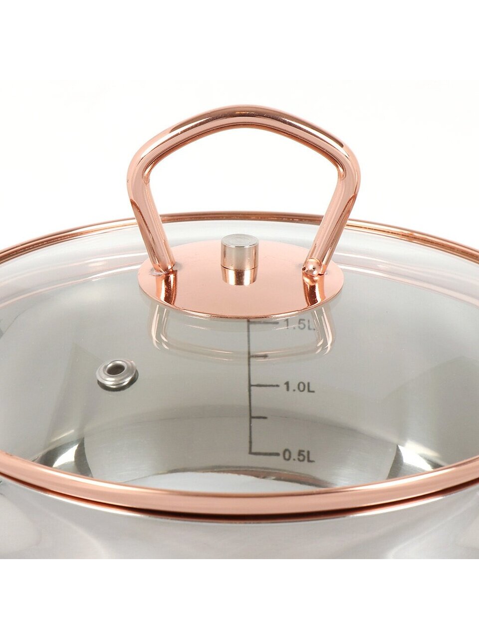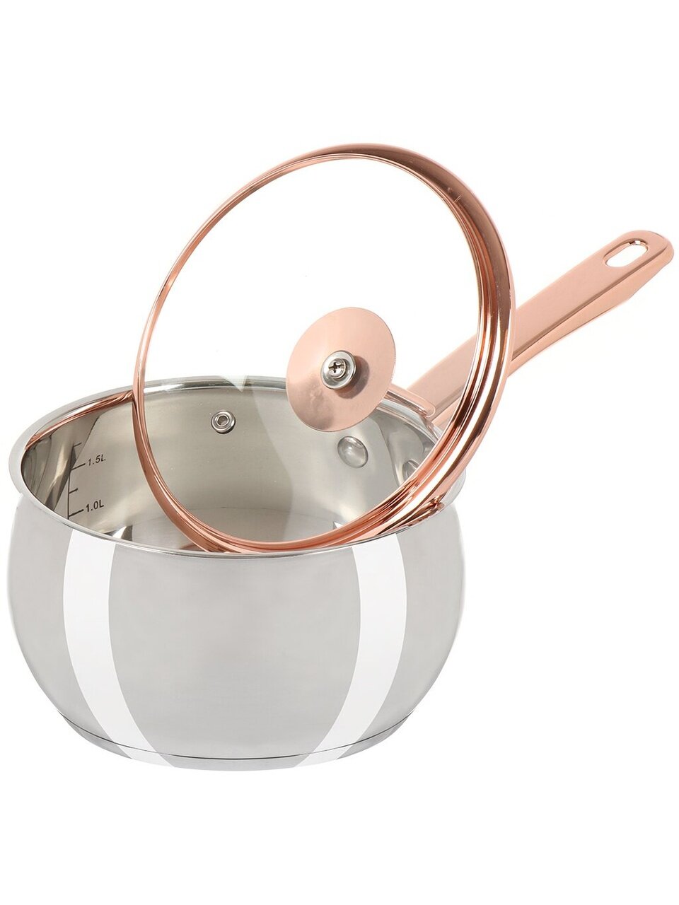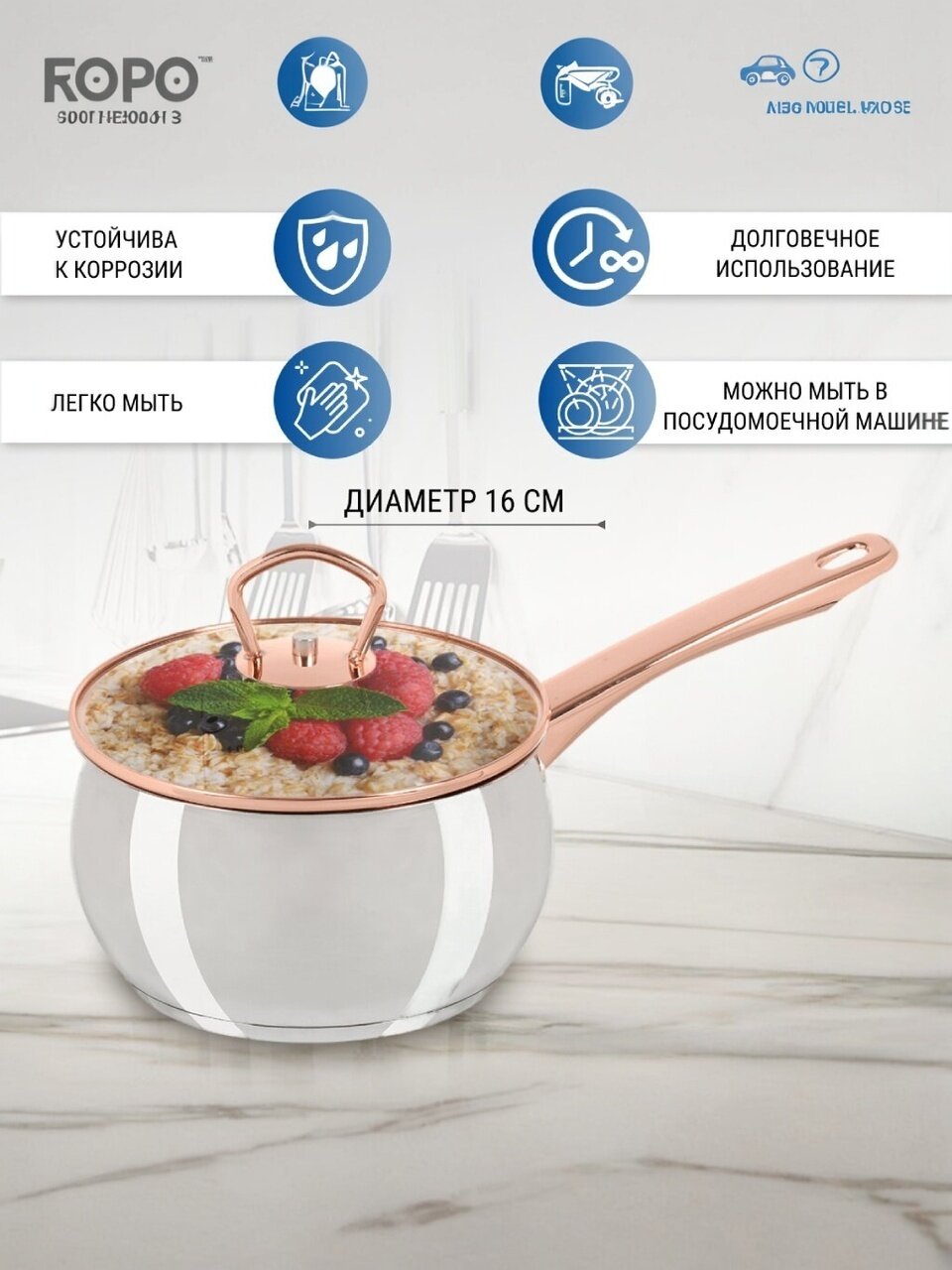 - Металлическая ручка удобна, прочна и не нагревается при использовании посуды;