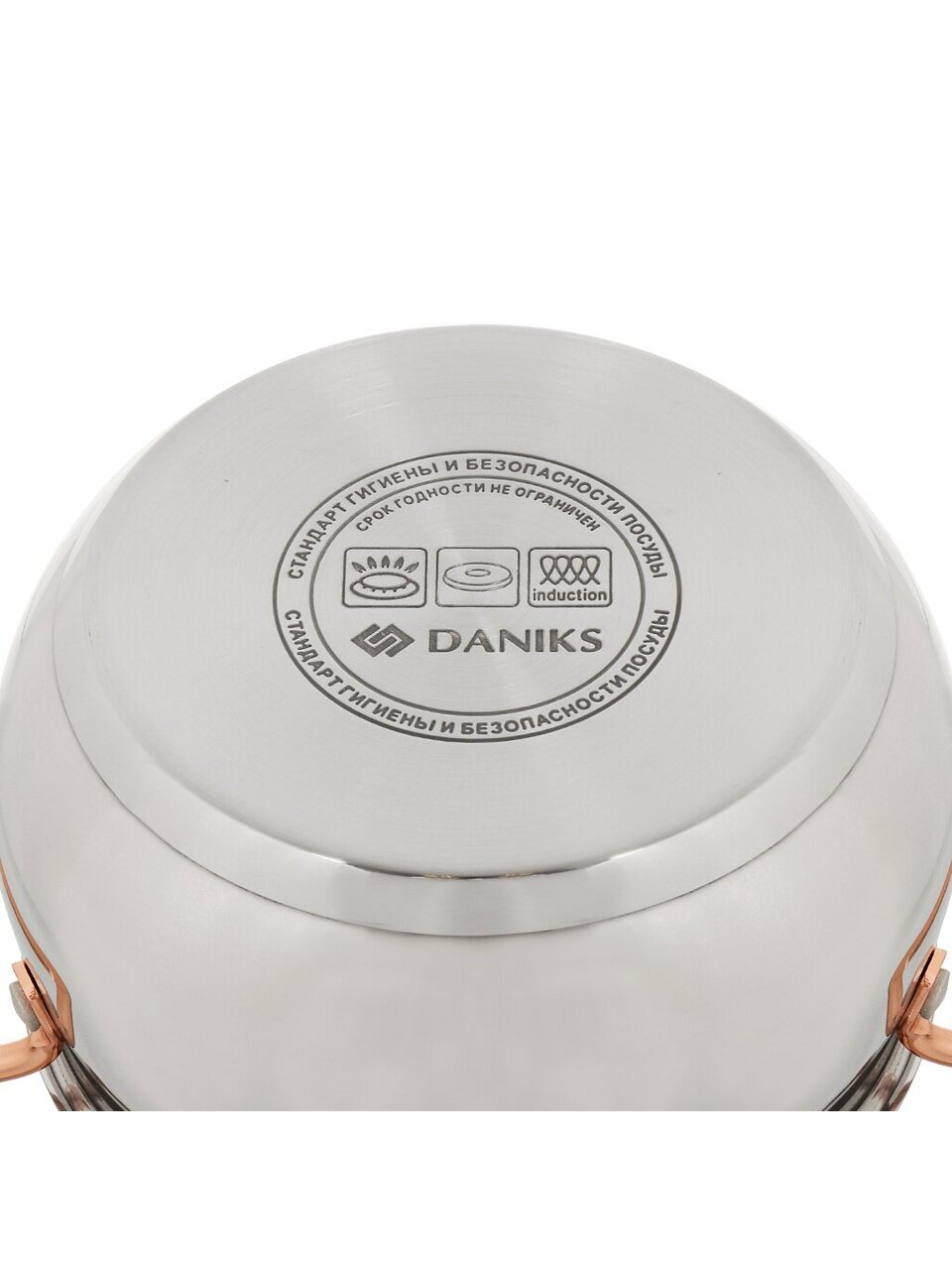 «Daniks» – отечественный бренд, который уже 10 лет радует покупателей функциональной и современной посудой. Качественные материалы и современные технологии способствуют долгому сроку службы изделий. А соответствие всем экологическим нормам характеризует изделия торговой марки «Daniks» безопасными для потребителя. На внешней боковой стороне и на дне ковша указано название бренда.