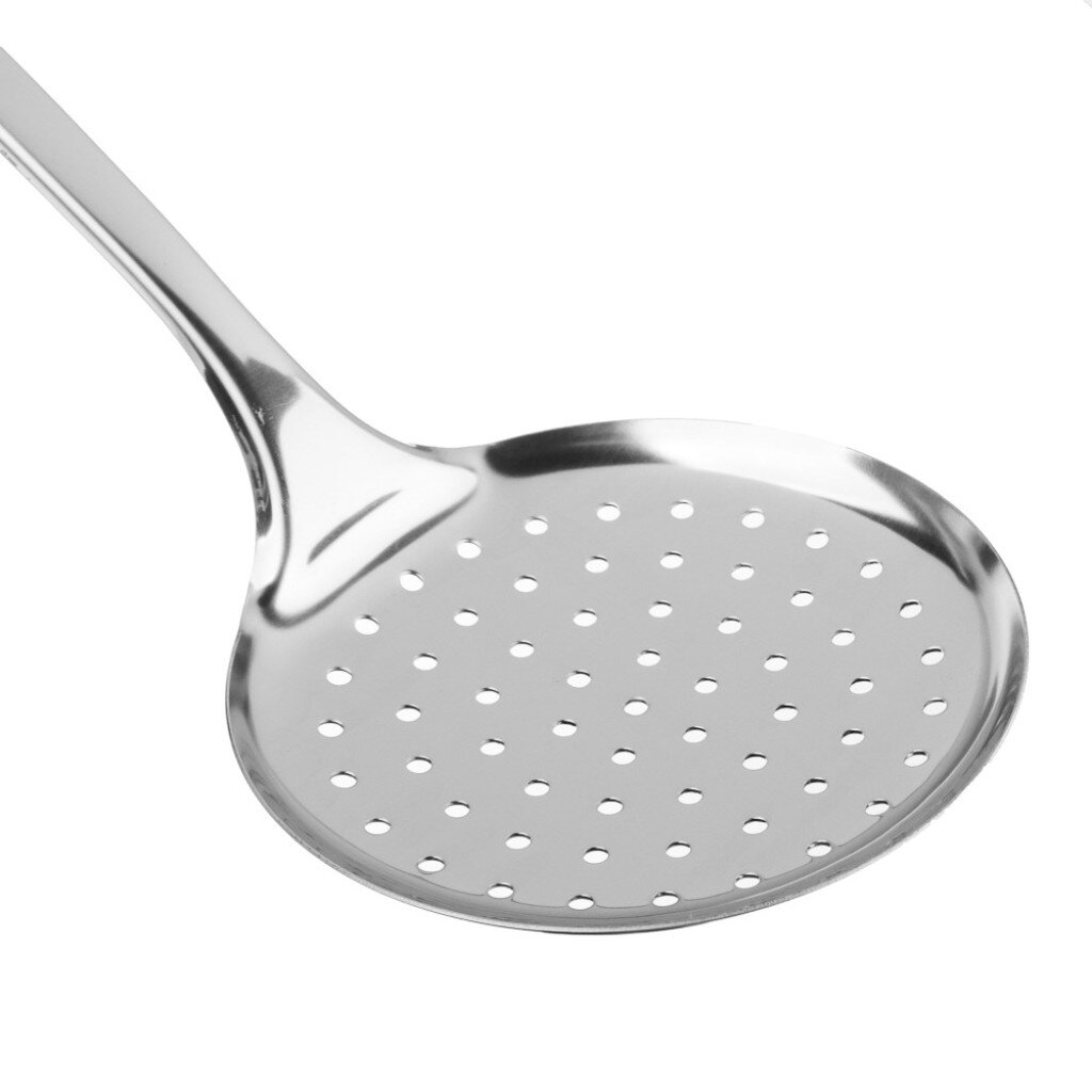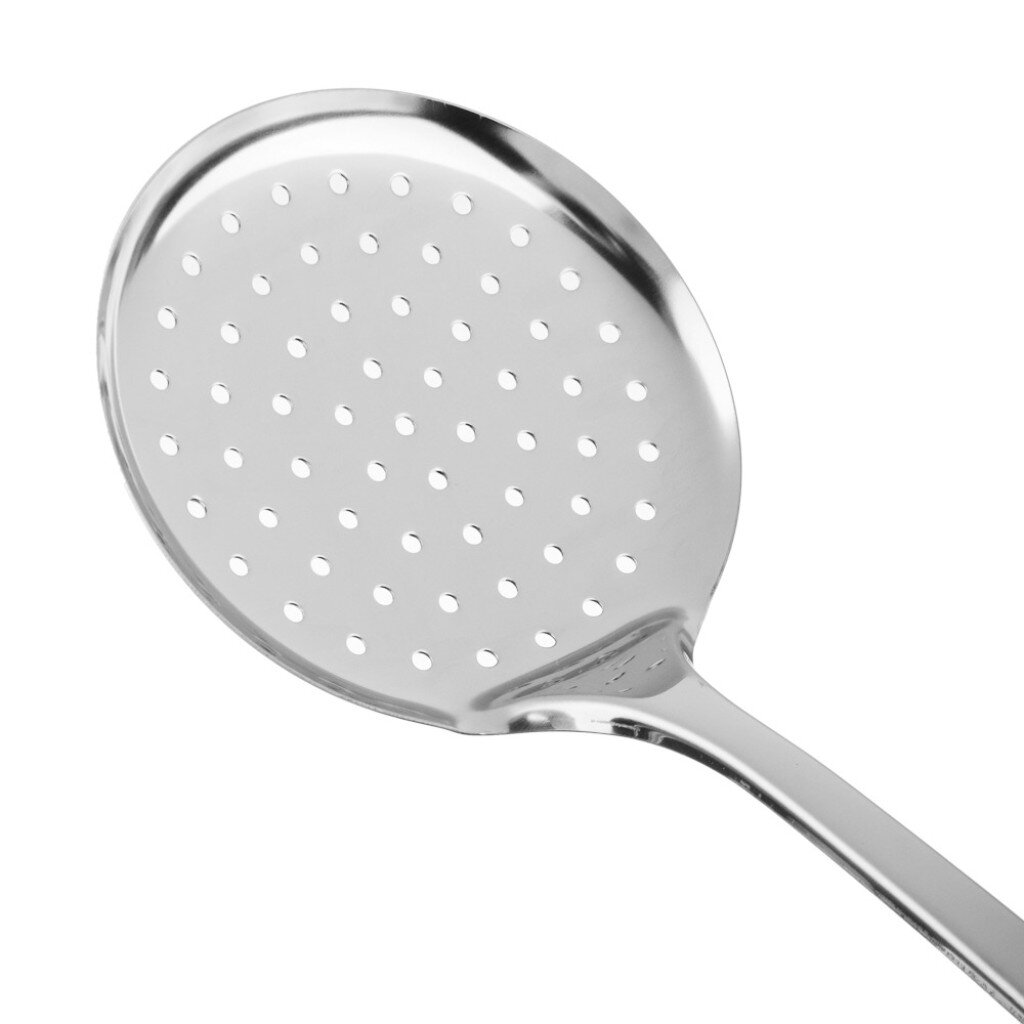 В отличие от пластиковых и алюминиевых аналогов, нержавеющая сталь не впитывает запахи, легко моется в посудомоечной машине и не боится влаги. Если вы ищете, какая шумовка лучше для снятия пены или подачи вареников, эта модель обеспечивает быстрый слив жидкости за счет крупных отверстий. Подходит для ежедневного использования, приготовления здоровой пищи, а также как практичный подарок — шумовка оснащена навеской для удобного хранения.