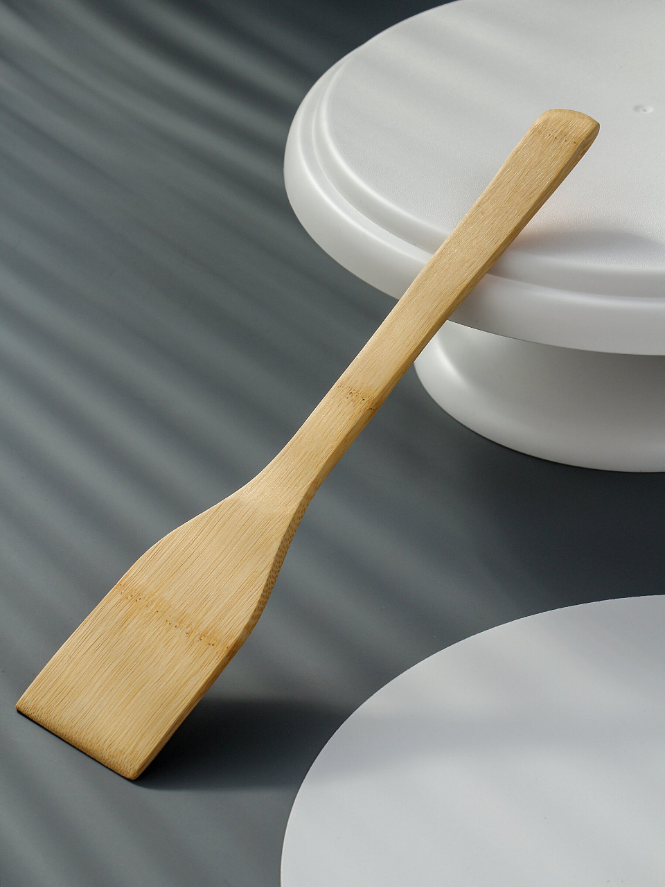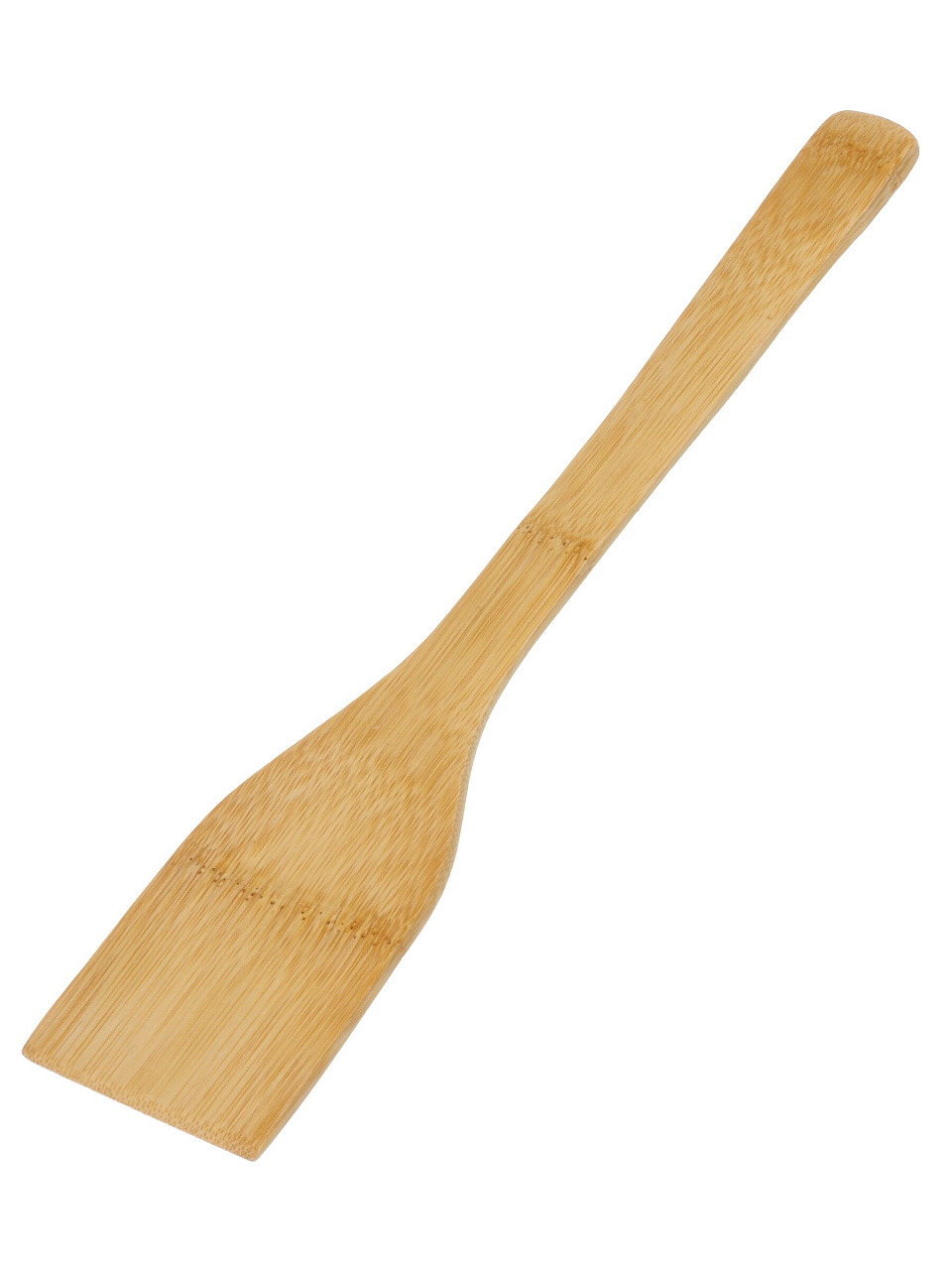 Универсальная бамбуковая лопатка C02-1005 — экологичный выбор для кухни: не царапает антипригарное покрытие, долговечна, безопасна для здоровья.
